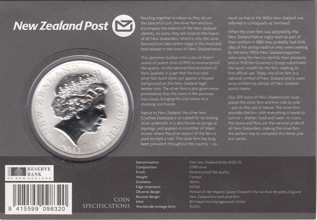Die Silber Anlagemünze Cook Islands "Bounty" wird seit 2008 geprägt. Die Vorderseite zeigt das Segelschiff "Bounty" bekannt durch die Meuterei 1777 auf der Überfahrt von Tahiti zu den Kolonien auf den Antillen. Die Bounty sollte Pflanzensetzlinge zur Bekämpfung der dortigen Hungersnot überführen. Der Kapitän Wiliam Blight wurde mit einigen Besatzungsmitgliedern in einem Boot ausgesetzt, das Schiff in Brand gesetzt und versenkt ("Bounty Bay" auf Pitcairn). Das Revers zegt die englische Königin Elisabeth II zum Motiv umrandet vom Prägejahr und dem Münznamen "Cook Islands".