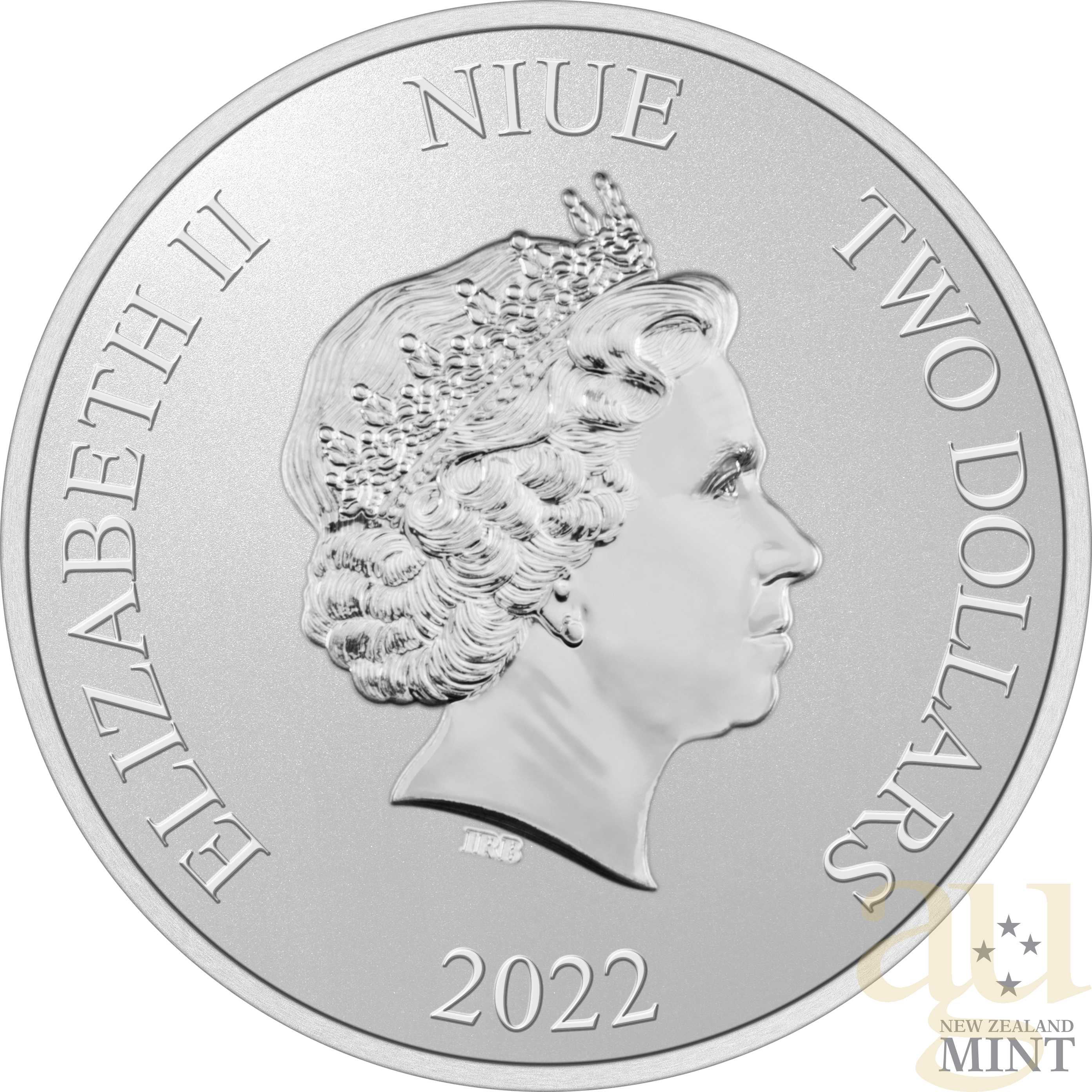 Die 1 Unze Silber Schildkröte aus Neuseeland mit dem Prägejahrgang 2022 wird von der New Zealand Mint unter höchsten Qualitätsstandards als Anlagemünze und als Sammlermünze mit einem Nennwert von 2$ ausgegeben. Seit über 40 Jahren produziert die New Zealand Mint, Münzen, Barren und Medaillen. Hauptsitz der Prägestätte ist Auckland. Die "Fiji Taku"-Silbermünze, dessen Name sich dem Ausgabeland, den Fidschi Inseln und der einheimischen Bezeichnung für Schildkröte "Taku“ zusammensetzt, war 2013 die erste Bullionmünze mit einem solchen Tiermotiv. Im Jahr 2014 erschien, parallel zur Version in Silber, das identische Motiv der Meeresschildkröte auf einer Münze, die der Inselstaat „Niue“ ausgegeben hat. Zeitgleich änderte sich der Münzname in "Niue Turtle" oder nur "Turtle". Die Motivseite zeigt eine schwimmende "Karettschildkröte", umgeben von Luftblasen, die zu den Meeresschildkröten gehört und bis zu 75 kg schwer und eine Größe von 90 cm erreichen kann. Sie steht auf der Liste bedrohter Tierarten des Washingtoner Artenschutzabkommens. Weiterhin ist am linken Münzrand der Schriftzug „TURTLE“ eingeprägt. Unterhalb der Schildkröte sehen wir die Prägung „1oz 999,9 FINE SILVER“. Der Rand ist geriffelt. Auf der Wertseite ist das Staatsoberhaupt der Commonwealth of Nations, die britische Königin Elisabeth II. zu sehen. Hintergrund ist, das Niue seit 1974 durch einen Assoziierungsvertrag mit Neuseeland verbunden ist. Savage Island, wie Niue früher hieß, ist eine der größten gehobenen Atolle der Welt und 261,46 km² groß. Die Koralleninsel liegt im Südpazifik in der Nähe von Tonga, westlich der Cookinseln und südlich von Samoa. Das aktuelle Bildnis der Queen entwarf der Designer Ian Rank-Broadley, zu erkennen an den Initialen "IRS" unterhalb des Bildnisses. Der Nominalwert der Währung ist erstmals nicht als Wort, sondern als Zahl aufgeprägt. Die "TWO DOLLARS" beziehen sich auf den Neuseeland Dollar. In der Rundschrift sind das Prägejahr „2022“ das Ausgabeland „Niue“ und der Name ihrer Majestät zu sehen.