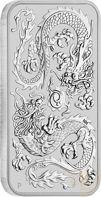 Seit 2018 wird die Dragon Rectangle Silbermünze von der bekannten Perth Mint Australien als Bullionmünze aufgelegt. "Rectangle" bzw. "Rectangular" steht dabei für die Rechteck-Form dieser außergewöhnlichen Münze, die auch als Dragon Münzbarren bezeichnet werden kann. Die Maße liegen bei 4,16 x 2,46 cm. Trotz der Barren ähnlichen Form handelt es sich aufgrund des Nennwertes (1AUD) um eine Münze. Das Motiv zeigt eine beliebte orientalische Drachendarstellung des chinesischen Lunarkalenders mit jährlich wechselndem Motiv. Das Prägelimit beträgt 250 000 Münzen.