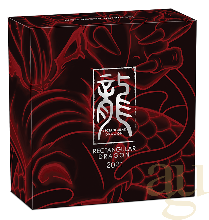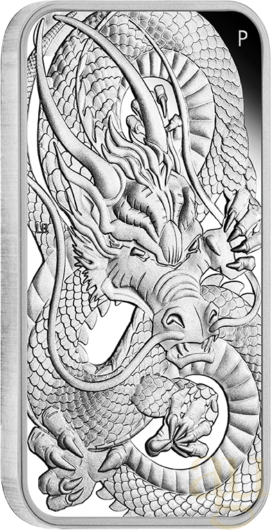 Seit 2018 wird die Dragon Rectangle Silbermünze von der bekannten Perth Mint Australien als Bullionmünze aufgelegt. "Rectangle" bzw. "Rectangular" steht dabei für die Rechteck-Form dieser außergewöhnlichen Münze, die auch als Dragon Münzbarren bezeichnet werden kann. Die Maße liegen bei 4,16 x 2,46 cm. Trotz der Barren ähnlichen Form handelt es sich aufgrund des Nennwertes (1AUD) um eine Münze. Das Motiv zeigt eine beliebte orientalische Drachendarstellung des chinesischen Lunarkalenders mit jährlich wechselndem Motiv. Das Prägelimit beträgt 3.888 Münzen