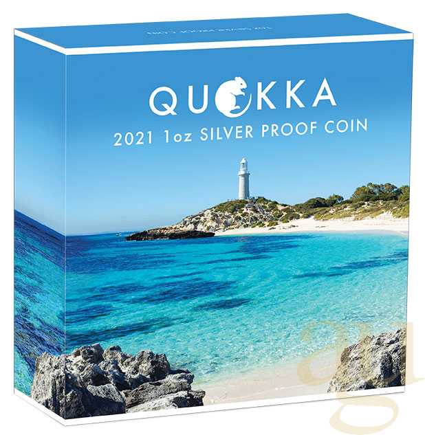 Die Perth Mint freut sich, diese neue 1oz Silber Proof Farbmünze mit dem Motiv eines Quokkas herauszubringen. Ein Quokka ist eine kleine Wallaby-Art, die hauptsächlich in der südwestlichen Region von Westaustralien vorkommt, insbesondere auf Rottnest Island, einem idyllischen Ort 18 Kilometer vor der Küste in der Nähe von Perth. Das etwa katzengroße Quokka hat ein dichtes, graubraunes Fell, ein breites Gesicht, glänzende schwarze Augen und runde pelzige Ohren. Dank seines niedlichen, lächelnden Aussehens und seiner Akzeptanz von Menschen ist der Quokka im Zeitalter der sozialen Medien zu einem beliebten Motiv für "Selfies" geworden. Jede Münze wird von der Perth Mint aus 1 Unze 99,99 % reinem Silber geprägt und als gesetzliches Zahlungsmittel gemäß dem Australian Currency Act 1965 ausgegeben. Die Perth Mint wird nicht mehr als 5.000 Stück der Quokka 2021 1oz Silver Proof Coloured Coin herausgeben. Auf der Rückseite der Münze ist ein farbiger Quokka an einem Strand mit einem Leuchtturm im Hintergrund abgebildet. Auf den Hinterbeinen stehend, frisst das pflanzenfressende Beuteltier seine bevorzugte Nahrung aus Blättern. Die Vorderseite der Münze zeigt das Jody Clark Bildnis Ihrer Majestät Königin Elizabeth II, das Gewicht und den Feingehalt, den Nennwert und die Jahreszahl 2021.