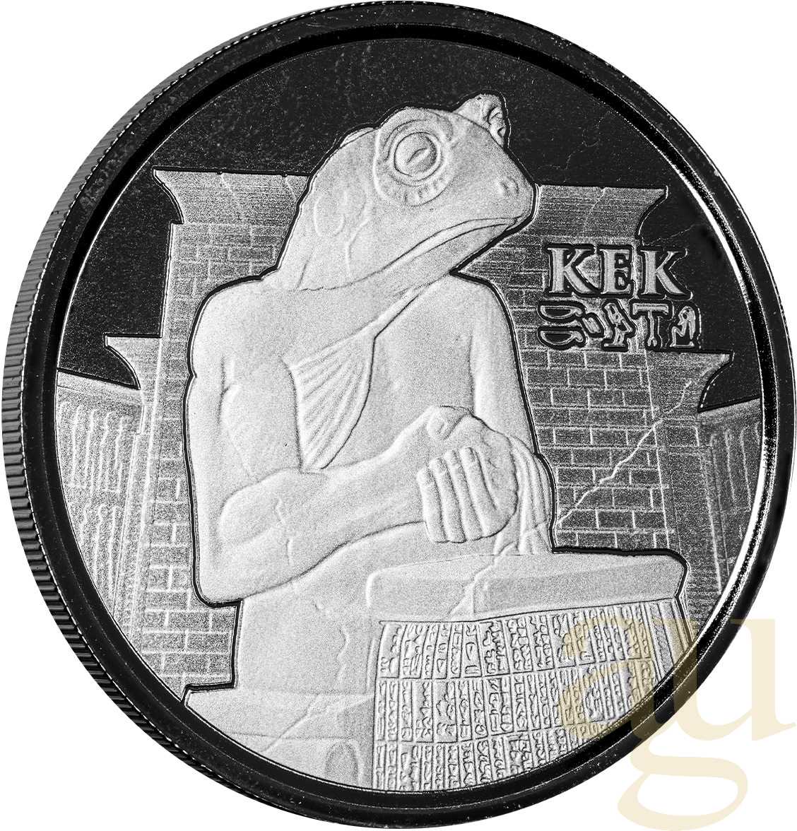 Die Münze "1 Unze Silbermünze Republic of Tschad Kek 2022", ist eine bedeutende Gottheit der alten ägyptischen Gesellschaft, oft als Froschkopf-Mann dargestellt.