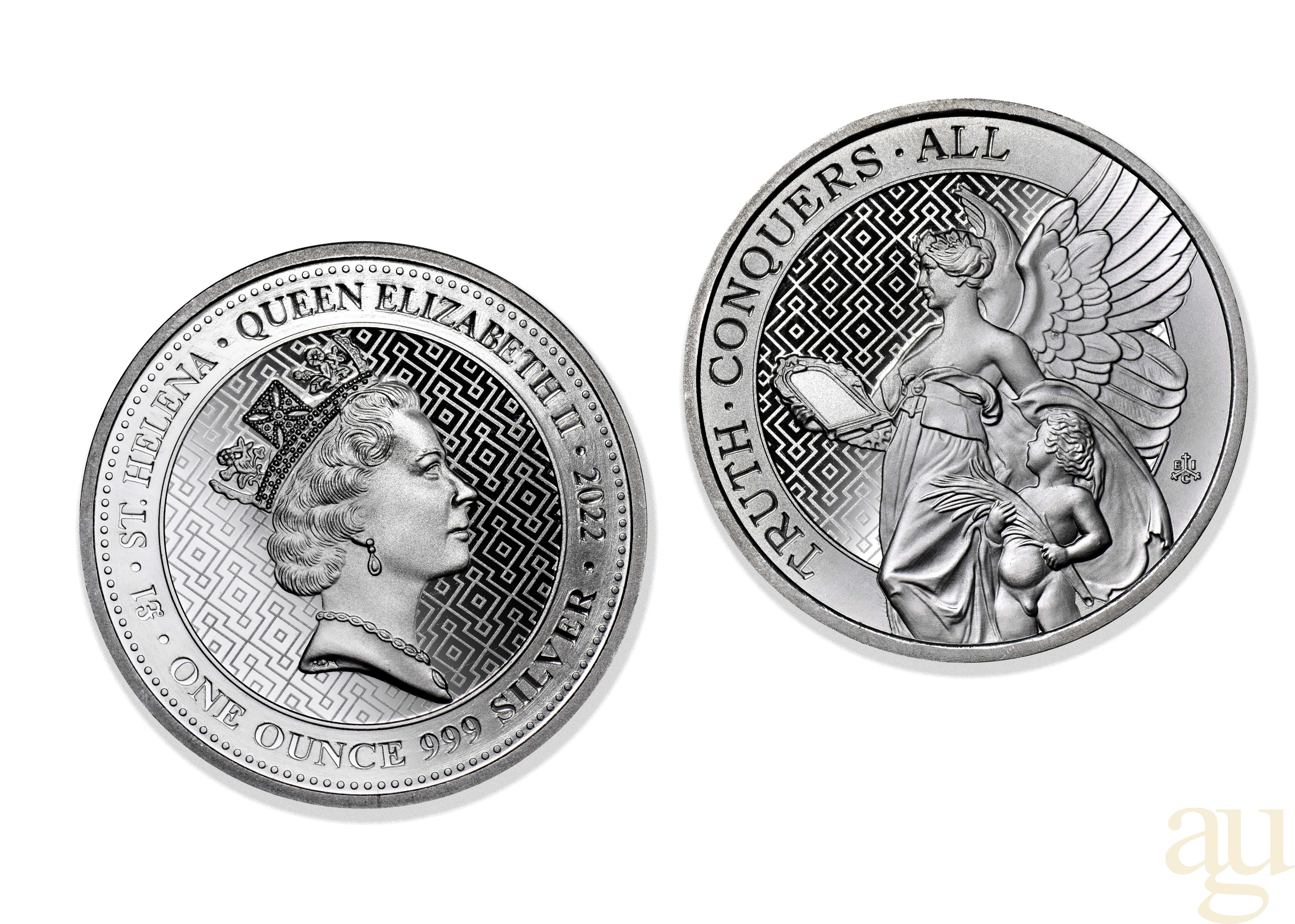 Die zweite Ausgabe der Queens Virtues Series von der East India Company und der Emissionsbehörde von St. Helena ist da. Nach dem Debüt der Serie mit der allegorischen Figur des Sieges widmet sich die zweite Ausgabe der Sechs-Münzen-Serie nun der Wahrheit. Ab sofort können Sie die 2022 1 oz St. Helena Silver Queens Virtues Truth Coins online bei Auragentum kaufen.
