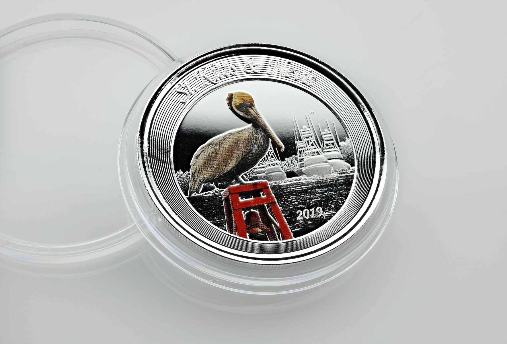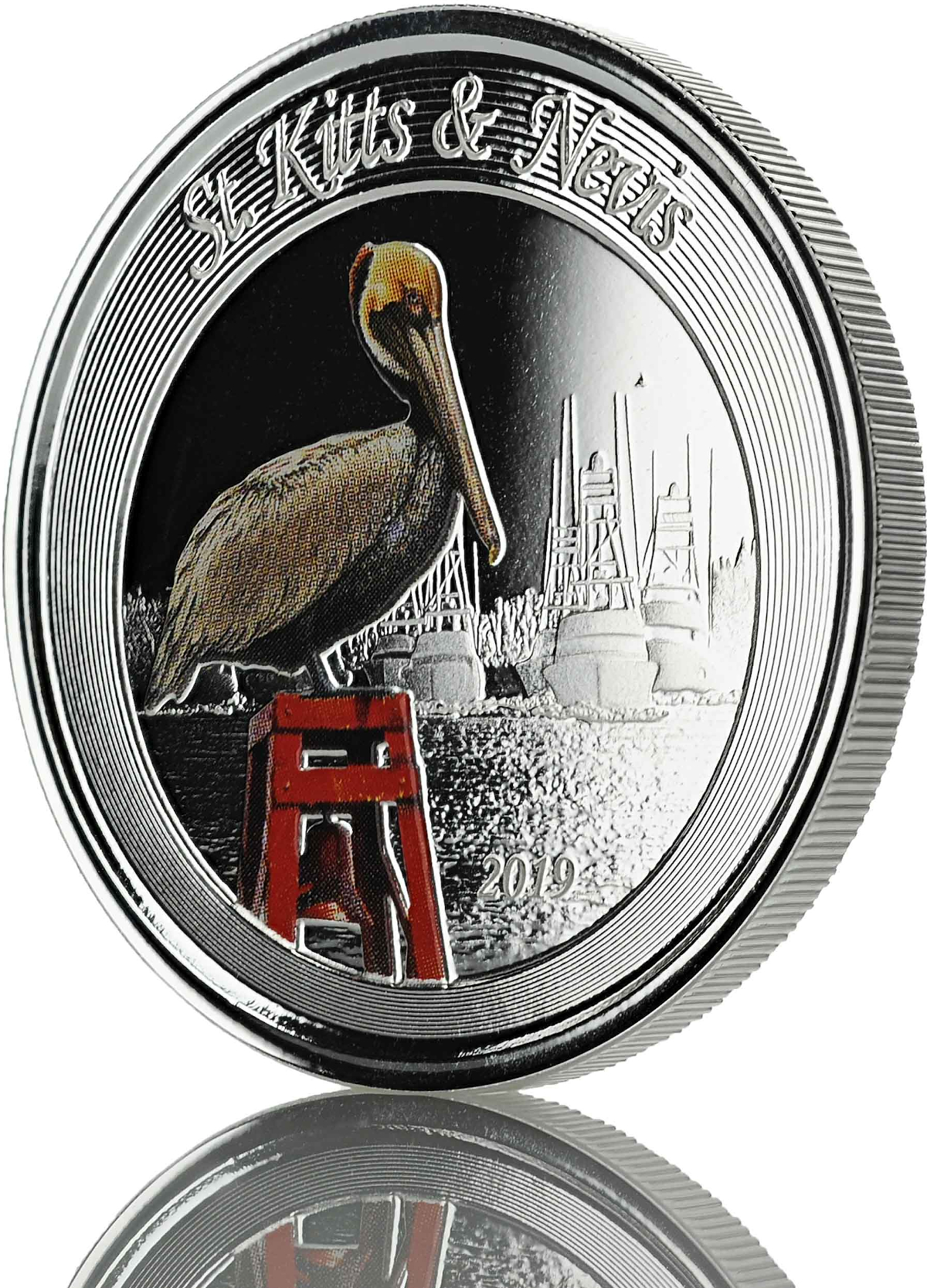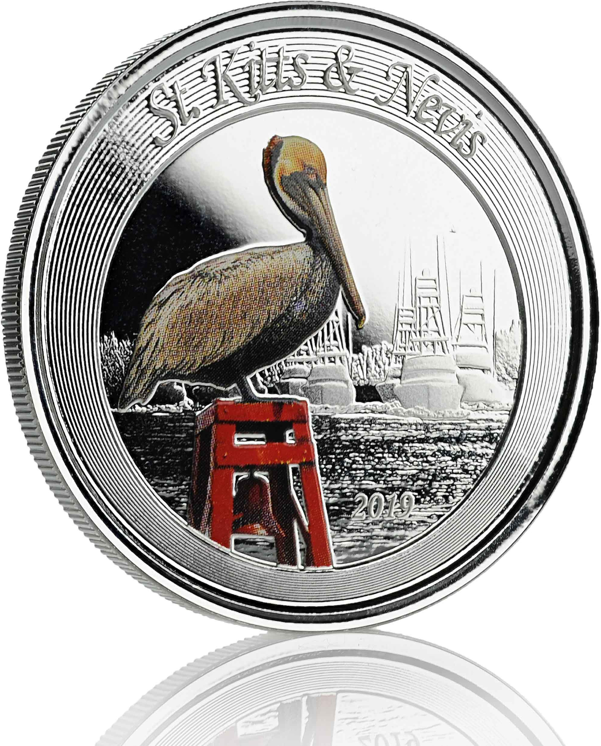1 Unze Silbermünze EC8 St. Kitts & Nevis - Pelikan 2019 - coloriert