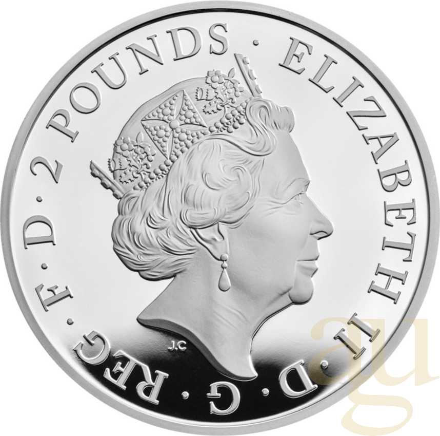 Es handelt sich hier um die erste Ausgabe der neuen Serie Tudor Beasts der Royal Mint in Großbritannien. Die Serie umfasst ingesamt 10 unterschiedliche Motive über 5 Jahre. Die Reihenfolge der Ausgaben durch die Royal Mint in Großbritannien kann abweichen.