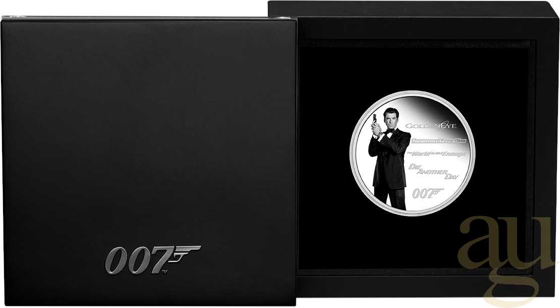 Bestellen Sie Ihre 1 Unze Silbermünze Tuvalu James Bond 007 - Pierce Brosnan 2024 - proof coloriert noch heute bei Auragentum und lassen Sie sich von der Magie des Films und der Eleganz des Edelmetalls verzaubern!