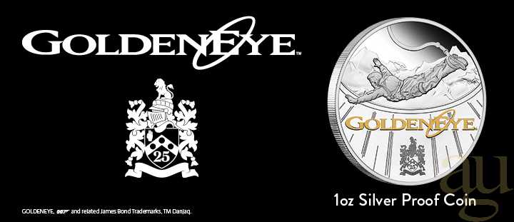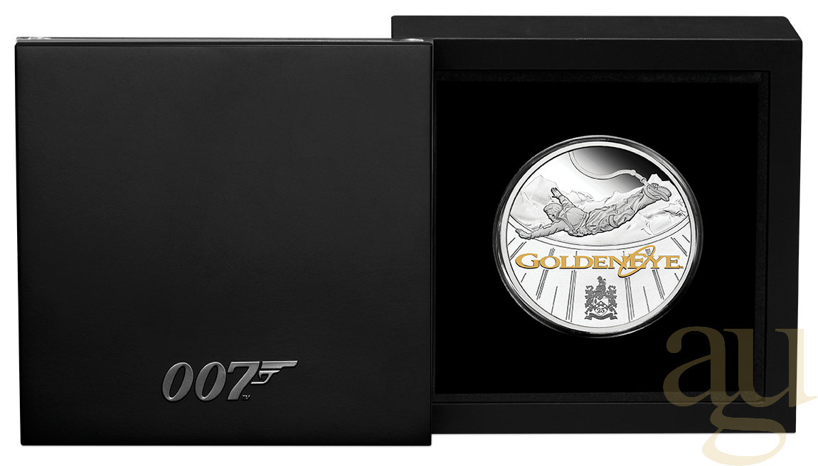 Zum 25. Jahrestag des James-Bond-Films GoldenEye erschien diese schöne 1 Unzen Silbermünze, welche von der Perth Mint ausgegeben wird. Das Motiv der Münze zeigt den berühmtesten Bungee Sprung der Welt und mit 220 m Höhe seinerzeit auch Weltrekord. Die Schlüsselszene wurde auf dem Verzasca Staudamm im Tessin gedreht und als bester Film-Stunt aller Zeiten ausgezeichnet.