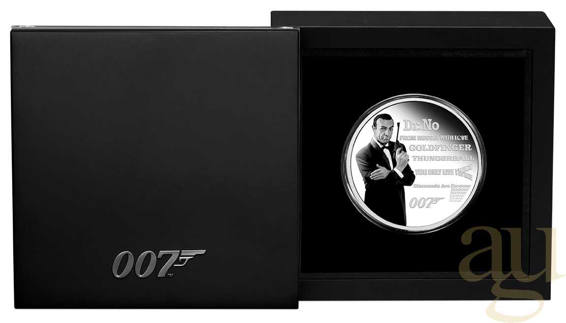 Begleitet von einem nummerierten Echtheitszertifikat wird jede Münze der limitierten Auflage in einem Etui mit dem Logo von 007 und einem thematischen Versandkarton präsentiert.