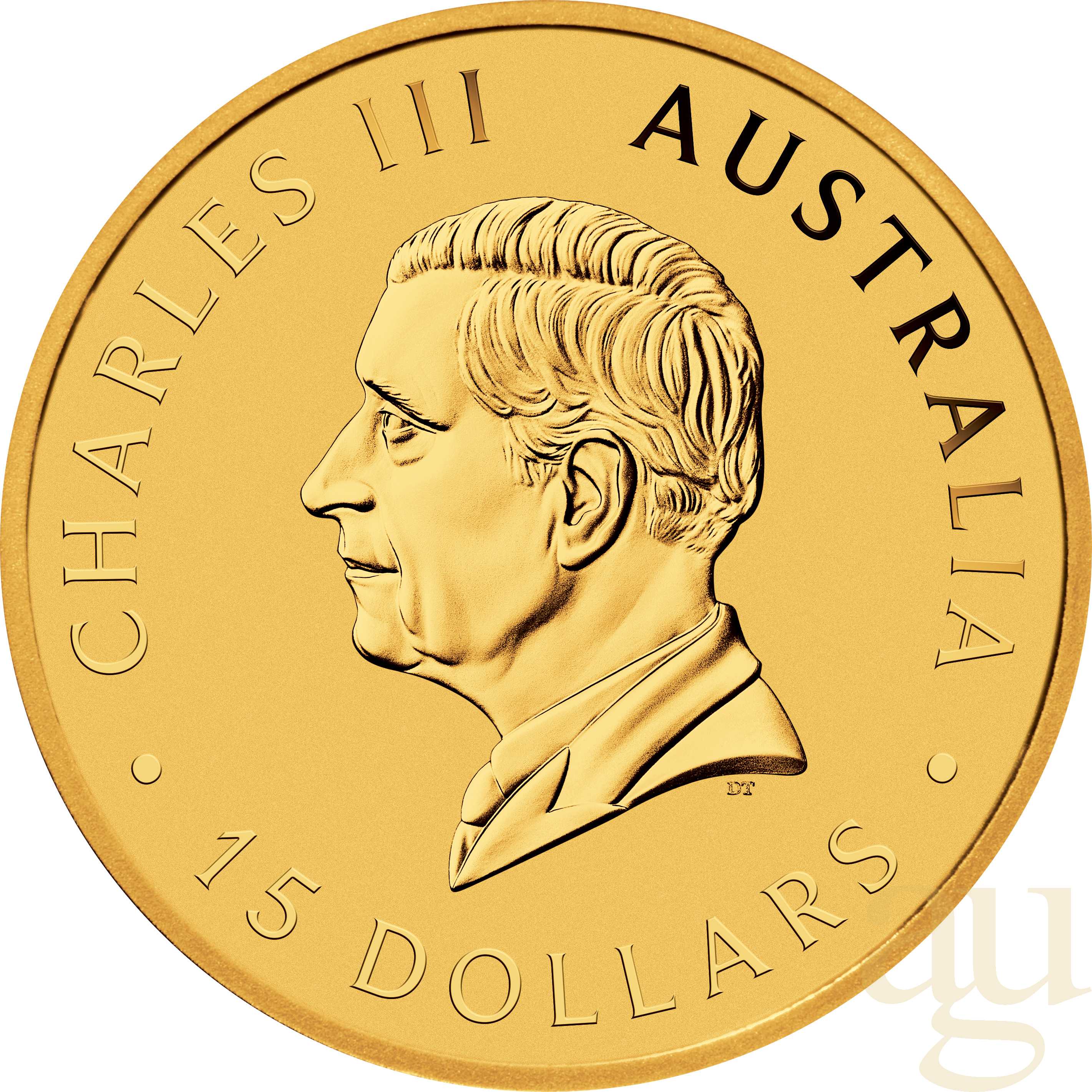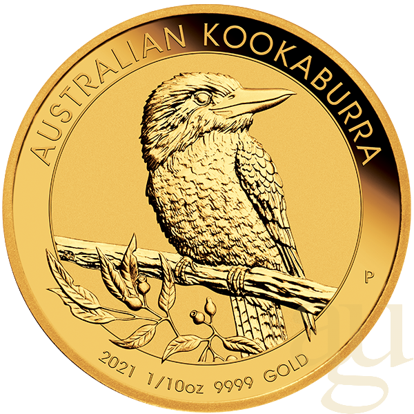 Den Eisvogel Kookaburra gibt es außer in Silber inzwischen auch als Kookaburra Goldmünze in den Einheiten 1/10 oz und 2 oz zu kaufen. Der Nennwert der Goldmünze beträgt 15 AUD. Die Bildseite zeigt immer den Kookaburra in jährlich wechselnden Motiven. Das Revers ziert das Porträt der englischen Königin Elizabeth II mit Nennwertangabe, das Bildnis ist gleichbleibend und wurde 1999 der Queen angepasst. Seit 2024 zeigt die Rückseite King Charles III.