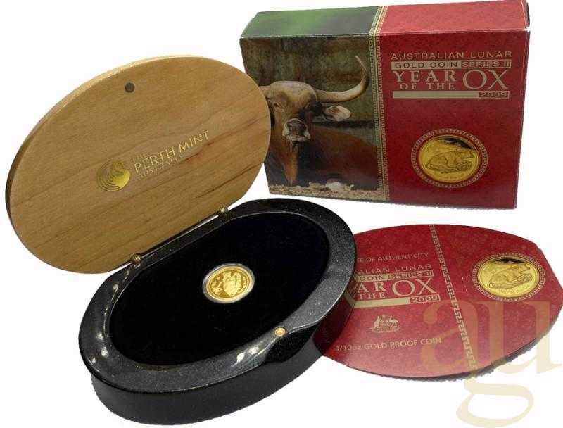 1/10 Unze Goldmünze Australien Lunar II Ochse 2009 - polierte Platte