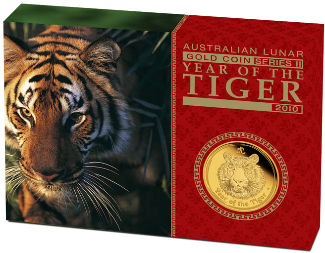 Produktinformationen "1/10 Unze Goldmünze Australien Lunar II Tiger 2010 - polierte Platte"