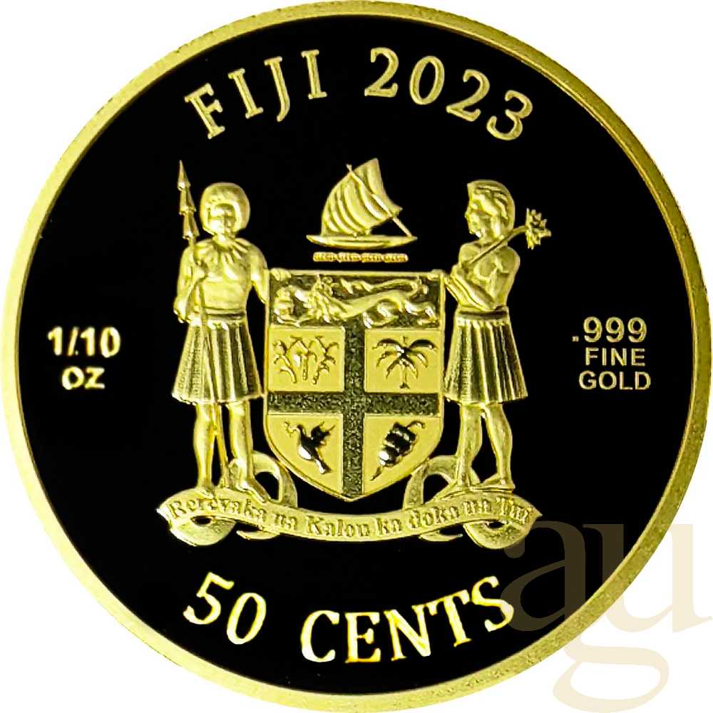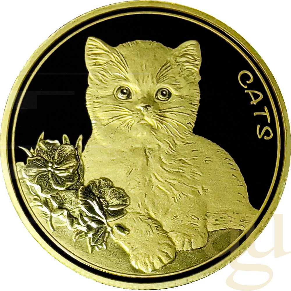 Tauchen Sie ein in die faszinierende Welt der Katzen mit der bezaubernden 1/10 Unze Goldmünze Fiji Cats 2023 - Prooflike. Die Liebe zu Katzen ist universell und diese Münze erfasst die Schönheit und Eleganz dieser Tiere in exquisitem Detail. Die Vorderseite der Münze zeigt ein bezauberndes Katzenmotiv, das die Persönlichkeit und den Charme dieser Tiere einfängt. Auf der Rückseite sehen Sie das offizielle Wappen von Fiji, und den Nennwert der Münze.