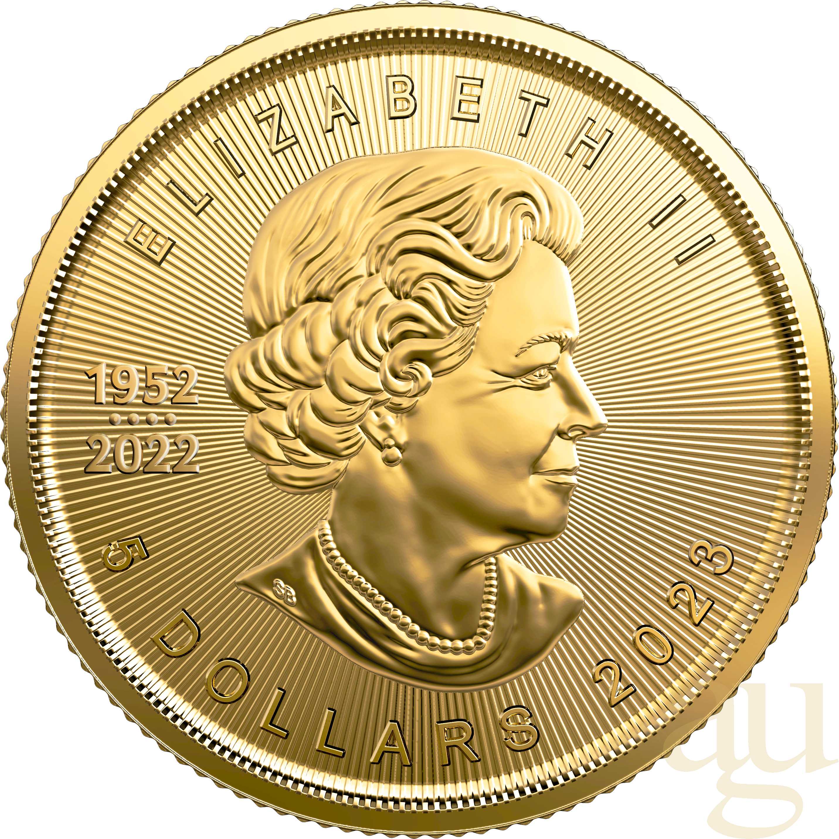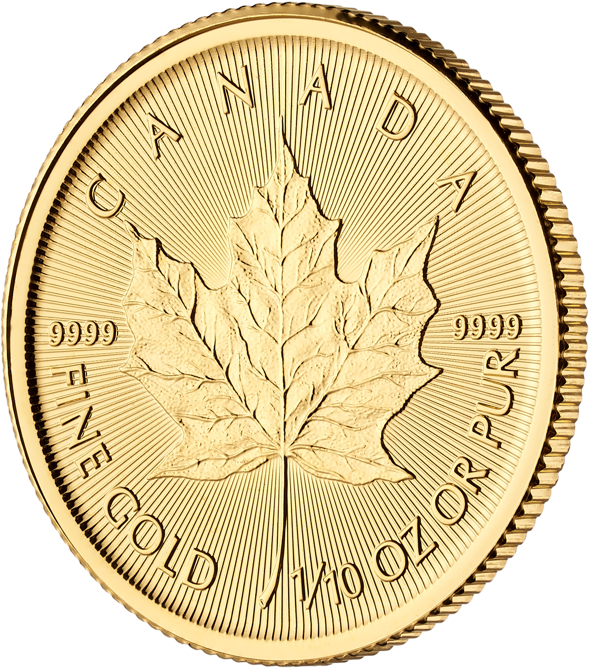 Die Royal Canadian Mint prägt seit 1979 die bekannte und beliebte Maple Leaf Goldmünze. Maple Leaf engl. heißt übersetzt Ahornblatt, dieses ist auf der Rückseite der Münze zu finden. Auf der Werteseite befindet sich, wie bei vielen anderen gängigen Münzen, die britische Königin Queen Elizabeth II. Seit 2013 ist auf der Motivseite zusätzlich unten rechts eine kleine Laser-Gravur mit der zweistelligen Zahl als Sicherheitsmerkmal aufgebracht. Es handelt sich hier um eine Feingoldmünze 99.99% zur Kapitanlage mit einem geringen Aufgeld auf den reinen Edelmetallwert. Der Rand ist geriffelt, das erschwert zusätzlich Fälschungen. Die Gold Maple Leaf ist in den Größen 1g, 1/20oz, 1/10oz, 1/4oz, 1/2oz und 1oz erhältlich. Gelegentlich werden von der RCM Sonderausgaben wie Mounted Police oder andere Tiermotive ausgegeben. Neben der Goldausgabe gibt es die erfolgreiche Bullionmünze auch in Silber als 1 Unze.