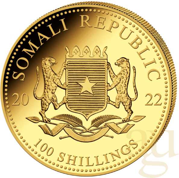 Namensgebend für die Münze ist der afrikanische Elefant, der auf der Vorderseite der Münze abgebildet ist. Das Motiv wechselt jedes Jahr, wodurch der Somalia Elefant zu einer beliebten Anlage- und Sammlermünze geworden ist Auf der Rückseite sieht man das Staatswappen der Somalischen Republik, das Prägejahr, sowie den Nennwert der Münze. Die Anlagemünzen sind allgemein anerkannt, einfach zu kaufen, zu verkaufen, zu transportieren und zu lagern. Ältere Jahrgänge sind meist gegen einen erhöhten Aufschlag zu erwerben. Damit ist der Somalia Elefant die ideale Ergänzung für Ihre Kapitalanlage.