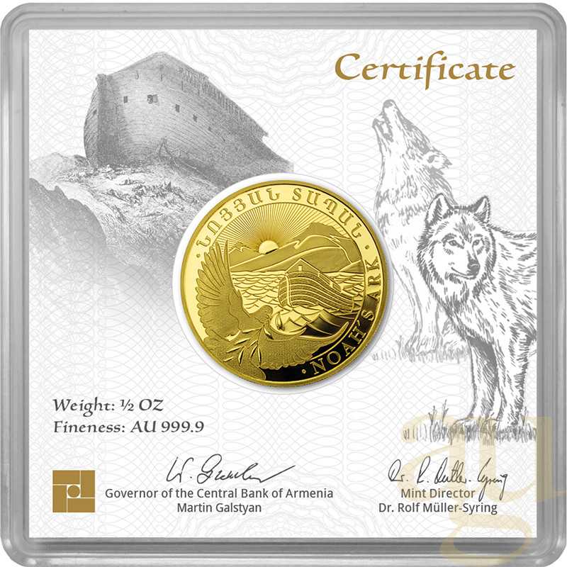 Im September 2020 erschien die Goldmünze Arche Noah aus Armenien erstmals als Anlagemünze in Stempelglanz. Die Geiger Edelmetalle AG besitzt das Prägerecht und produziert die Münze in Deutschland. Auf der Vorderseite ist das aus der Bibel bekannte Schiff in aufgewühlter See vor im Hintergrund verlaufenden Sonnenstrahlen über dem armenischen Gebirge Ararat zu sehen.