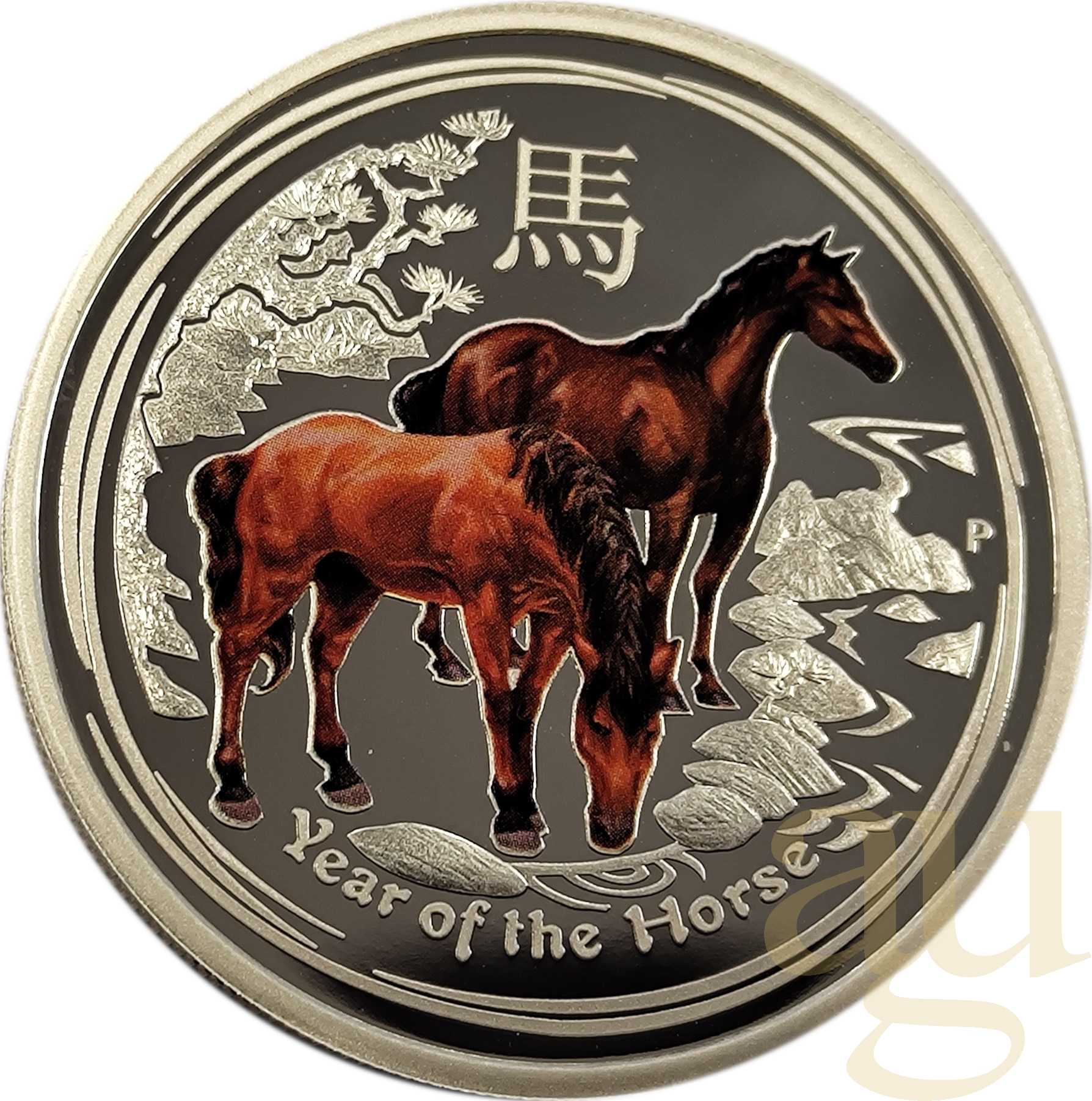 1/2 Unze Silbermünze Australien Lunar II Pferd 2014 proof - coloriert