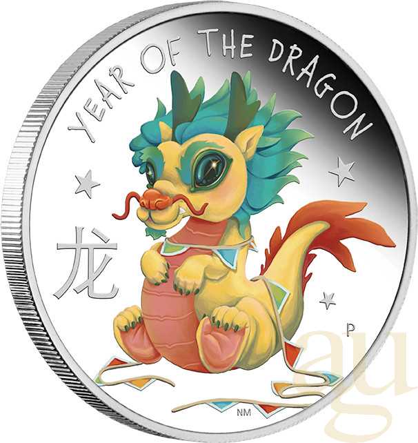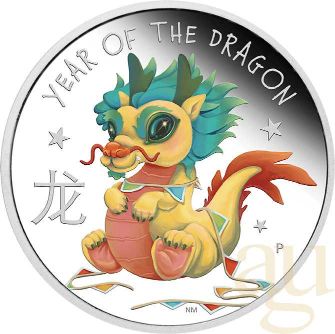 1/2 Unze Silbermünze Tuvalu Baby Drache 2024 - polierte Platte - coloriert