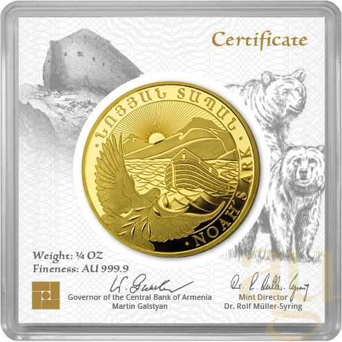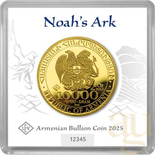 Im September 2020 erschien die Goldmünze Arche Noah aus Armenien erstmals als Anlagemünze in Stempelglanz. Die Geiger Edelmetalle AG besitzt das Prägerecht und produziert die Münze in Deutschland. Auf der Vorderseite ist das aus der Bibel bekannte Schiff in aufgewühlter See vor im Hintergrund verlaufenden Sonnenstrahlen über dem armenischen Gebirge Ararat zu sehen.