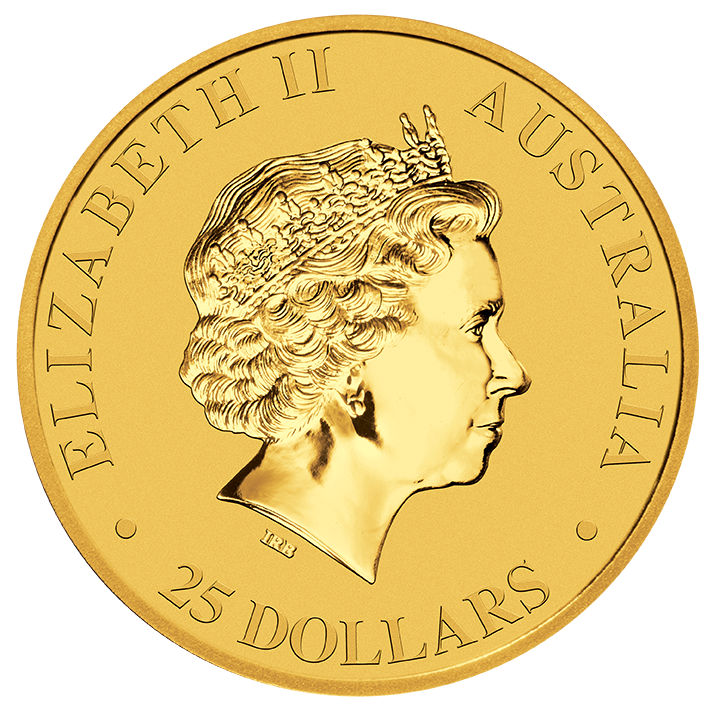 Das australische Känguru bzw. Nugget ist die älteste Münzserie der bereits 1899 eröffneten australischen Perth Mint. Die Münze wurde das erste Mal im Jahre 1987 in den vier Standardgrößen 1/10 Unze, 1/4 Unze, 1/2 Unze sowie 1 Unze in der Reinheit 99,99% geprägt und ist somit nach der Maple-Leaf-Münze in Gold die zweitälteste Anlagemünze aus reinem Gold. Aufgrund der hohen Bekanntheit, der sehr hohen Prägequalität und des günstigen Preises erfreut sich das australische Goldkänguru weltweit bei Anlegern und Investoren höchster Beliebtheit. Die Auflage des australischen Kängurus bzw. Nuggets war in den ersten drei Jahren der Produktion, also bis einschließlich 1989 unbegrenzt. Seit 1990 wurde die Auflage der 1 Unzen Münzen dann limitiert. Die gesetzte Limitierung schwankte in den darauffolgenden vier Jahren zwischen jährlich 250.000 und 300.000 Stück bis 1994 das Prägelimit einheitlich auf jährlich 350.000 Stück erhöht wurde. Diese Auflage wurde seitdem jedoch nie gänzlich ausgeprägt und schwankte zwischen 31.206 (im Jahr 2001) und 298.016 (im Jahr 2009) Stück pro Jahr. Insgesamt wurden bis Ende 2011 bereits knapp mehr als 3,5 Millionen der 1 Unzen Münzen produziert. Die detaillierten Prägezahlen können Sie jeweils direkt hier einsehen. Neben den von Anfang an offerierten Größen von 1/10 Unze bis zu 1 Unze, wurde die australischen Känguru- bzw. Nuggetserie noch weiter ausgebaut. Ab 1990 wurde die Goldmünze auch in der Größe 1/20 Unze ausgegeben und jährlich auf 200.000 Stück limitiert. Das Zwanzigstel wurde - wohl aufgrund stark rückläufiger Verkaufszahlen - letztmalig 2009 geprägt und die Produktion dann eingestellt. Ebenfalls seit 1990 wurden die Größen 2 Unzen, 10 Unzen sowie 1 Kilogramm mit unbegrenzter Auflage eingeführt. Wie die Zwanzigstel wurde 2009 auch die Produktion der 2 Unzen und 10 Unzen Münzen wieder eingestellt, sodass neben der 1-Kilogramm-Variante derzeit wieder nur die vier ursprünglichen Standardgrößen angeboten werden. Auf der Vorderseite der Münze ist das jährlich wechselde Motiv des australischen Kängurus abgebildet. Neben dem Schriftzug 'Australian Kangaroo' sowie das für die Perth Mint typische Mint-Mark 'P' befinden sich zusätzlich die Initialen des jeweiligen Designers, das Prägejahr, das Gewicht '1/4oz', die Feinheit '9999' und das Metall 'Gold'. Auf der Rückseite der Münze ist nebem dem Nennwert '25 Dollars' auch das Ausgabeland 'Australia' eingeprägt. Außerdem ist die Inschrift 'Elizabeth II', ein Profilbild derselbigen, sowie die Initialen 'IRB' des Graveurs Ian Rand-Broadley zu finden. Die Münzen werden in allen Einheiten von 1/20 Unze bis 1 Kilogramm einzeln in einer transparenten Hartplastikkapsel ausgeliefert. Bei Auragentum können Sie die australischen Goldkängurus zu stets aktuellen Preisen online oder in unserem Ladengeschäft in Erding, nähe München, gegen Barzahlung kaufen und verkaufen. Von uns erhalten Sie beim Kauf des Kängurus die Münzen stets als prägefrische Neuware, die wir Ihnen in den Originalkapseln liefern. Beim Kauf ab 20 Stück erhalten Sie diese selbstverständlich in der originalverschweißten Rolle. Fünf dieser Rollen werden von uns im originalversiegelten 100er-Karton ausgeliefert. Bei größeren Bestellungen ab 300 Stück erhalten Sie diese von uns in der originalversiegelten Verpackungseinheit der Perth Mint.