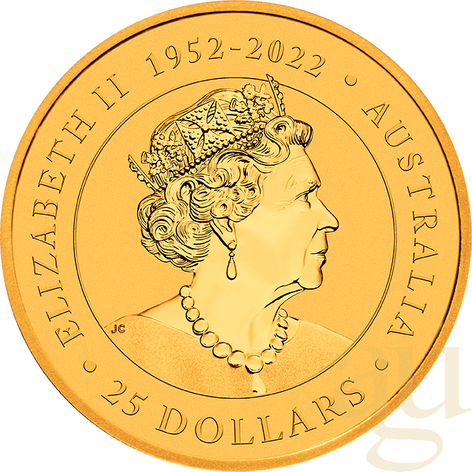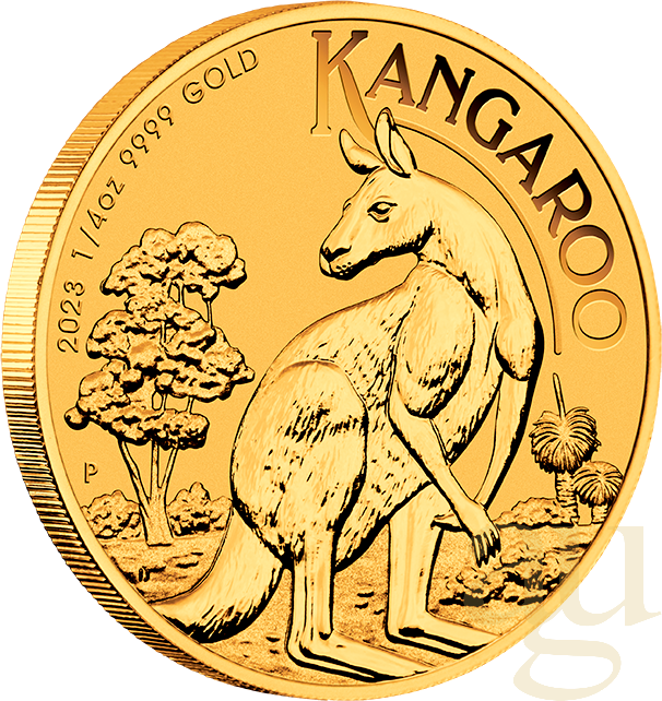 Das australische Känguru bzw. Nugget ist die älteste Münzserie der bereits 1899 eröffneten australischen Perth Mint. Die Münze wurde das erste Mal im Jahre 1987 in den vier Standardgrößen 1/10 Unze, 1/4 Unze, 1/2 Unze sowie 1 Unze in der Reinheit 99,99% geprägt und ist somit nach der Maple-Leaf-Münze in Gold die zweitälteste Anlagemünze aus reinem Gold. Aufgrund der hohen Bekanntheit, der sehr hohen Prägequalität und des günstigen Preises erfreut sich das australische Goldkänguru weltweit bei Anlegern und Investoren höchster Beliebtheit. Die Auflage des australischen Kängurus bzw. Nuggets war in den ersten drei Jahren der Produktion, also bis einschließlich 1989 unbegrenzt. Seit 1990 wurde die Auflage der 1 Unzen Münzen dann limitiert. Die gesetzte Limitierung schwankte in den darauffolgenden vier Jahren zwischen jährlich 250.000 und 300.000 Stück bis 1994 das Prägelimit einheitlich auf jährlich 350.000 Stück erhöht wurde. Diese Auflage wurde seitdem jedoch nie gänzlich ausgeprägt und schwankte zwischen 31.206 (im Jahr 2001) und 298.016 (im Jahr 2009) Stück pro Jahr. Insgesamt wurden bis Ende 2011 bereits knapp mehr als 3,5 Millionen der 1 Unzen Münzen produziert. Die detaillierten Prägezahlen können Sie jeweils direkt hier einsehen. Neben den von Anfang an offerierten Größen von 1/10 Unze bis zu 1 Unze, wurde die australischen Känguru- bzw. Nuggetserie noch weiter ausgebaut. Ab 1990 wurde die Goldmünze auch in der Größe 1/20 Unze ausgegeben und jährlich auf 200.000 Stück limitiert. Das Zwanzigstel wurde - wohl aufgrund stark rückläufiger Verkaufszahlen - letztmalig 2009 geprägt und die Produktion dann eingestellt. Ebenfalls seit 1990 wurden die Größen 2 Unzen, 10 Unzen sowie 1 Kilogramm mit unbegrenzter Auflage eingeführt. Wie die Zwanzigstel wurde 2009 auch die Produktion der 2 Unzen und 10 Unzen Münzen wieder eingestellt, sodass neben der 1-Kilogramm-Variante derzeit wieder nur die vier ursprünglichen Standardgrößen angeboten werden. Auf der Vorderseite der Münze ist das jährlich wechselde Motiv des australischen Kängurus abgebildet. Neben dem Schriftzug 'Australian Kangaroo' sowie das für die Perth Mint typische Mint-Mark 'P' befinden sich zusätzlich die Initialen des jeweiligen Designers, das Prägejahr, das Gewicht '1/4oz', die Feinheit '9999' und das Metall 'Gold'. Auf der Rückseite der Münze ist nebem dem Nennwert '25 Dollars' auch das Ausgabeland 'Australia' eingeprägt. Außerdem ist die Inschrift 'Elizabeth II', ein Profilbild derselbigen, sowie die Initialen 'IRB' des Graveurs Ian Rand-Broadley zu finden. Die Münzen werden in allen Einheiten von 1/20 Unze bis 1 Kilogramm einzeln in einer transparenten Hartplastikkapsel ausgeliefert. Bei Auragentum können Sie die australischen Goldkängurus zu stets aktuellen Preisen online oder in unserem Ladengeschäft in Erding, nähe München, gegen Barzahlung kaufen und verkaufen.