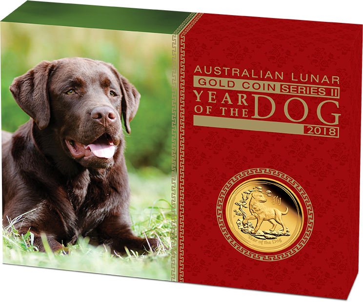 Produktinformationen "1/4 Unze Goldmünze Australien Lunar II Hund 2018 - polierte Platte"