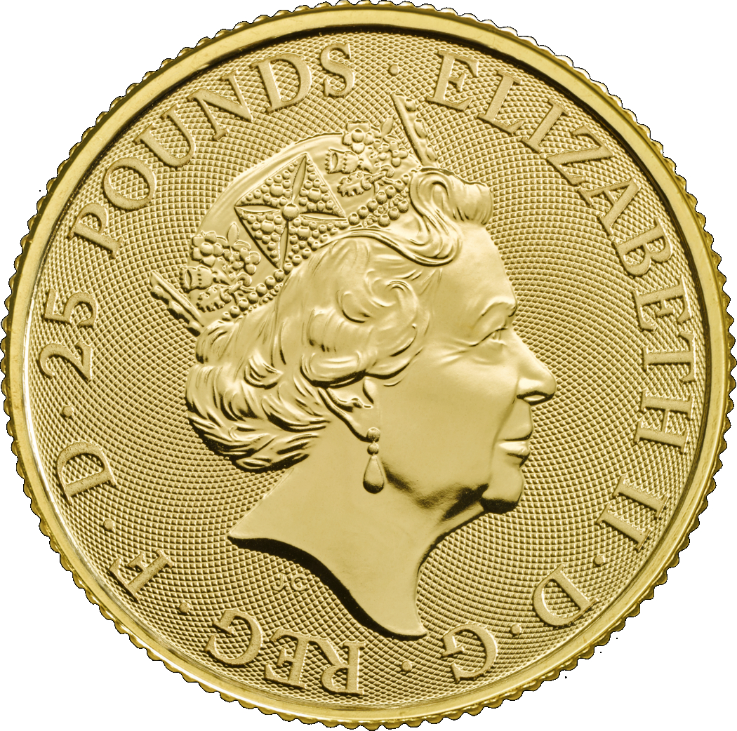 Seit dem Jahr 2016 wird die „The Queen´s Beasts“ Serie von der britischen Royal Mint ausgegeben. Die Serie beinhaltet zehn verschiedene Wappenmotive, die Rückseite wird von Königin Elizabeth ll geziert. Mit einem Nennwert von 100 Pounds gelten die Münzen als anerkanntes Zahlungsmittel in Großbritannien. Die Serie symbolisiert zehn imposante Tierstatuen, welche bei der Krönung von Königin Elizabeth II. im Jahre 1953 den Eingang von Westminster Abbey zierten.