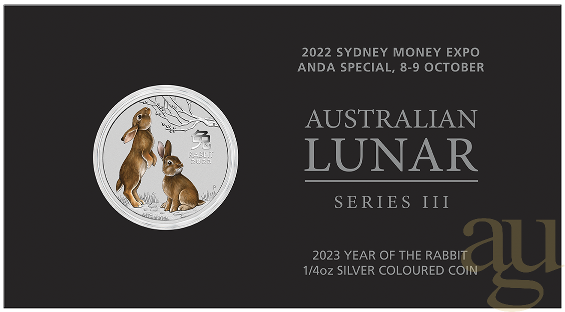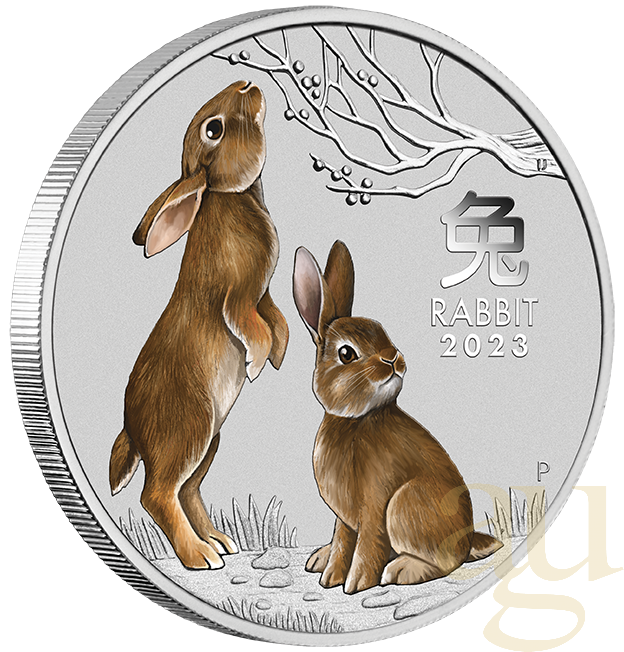 1/4 Unze Silbermünze Australien Lunar III Hase 2023 - coloriert