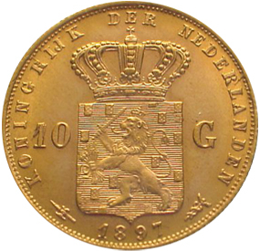 Produktinformationen "10 Gulden Goldmünze Wilhelmina Jugendportrait 1897"