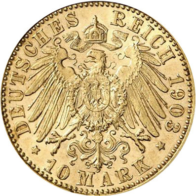 Die Goldmünzen mit den Portraits der Deutschen Kaiser zählen zu den historischen Handelsgoldmünzen. Die meisten im Umlauf befindlichen Prägungen sind die Preußischen. Neben den 5 Mark und 20 Mark Goldmünzen wurden auch 10 Markin Gold geprägt. Zur Einführung der Reichsmark in der Weimarer Republik im Jahre 1924 wurde per Gesetz beschlossen, dass die 10 und 20 Mark Goldmünzen des Kaiserreichs weiterhin als gesetzliches Zahlungsmittel fortbestehen sollten.