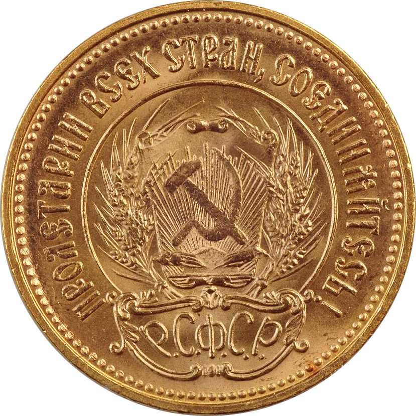 Erstmals in 1923 geprägt, ist die russische 10 Ruben Tscherwonetz Goldmünze ein echter Klassiker. Die Vorderseite ziert ein russischer Bauer, der vor einer Industrieanlage posiert. Aufgrund des Alters einiger Münzen unterscheiden sich Münzen aus unterschiedlichen Prägungen oft in ihrem Goldton. Dieser reicht von Goldgelb bis Rotgolden. Die Goldmünze Tscherwonetz wird ausschließlich in der Größe von 10 Rubel geprägt. Der Feingehalt der Münzen beträgt 900/1000.