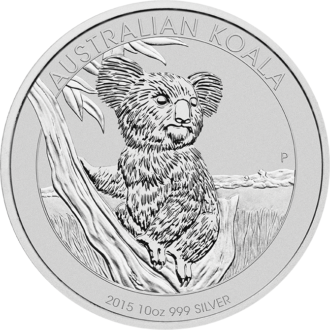 Beschreibung der 1 Unze Silbermünze Australien Koala 2011 Ein auf einem Eukalyptusbaumast stehender Koala ziert die Bildseite der Australien Koala 10 Unze Silbermünze 2015. Das P rechts seines Abbildes ist das Münzzeichen der Perth Mint. Auf der Wertseite ist ein Portrait der Queen Elizabeth II zu sehen. Feinheit und Größe der Serie Die Komplette Serie der Australien Koala Serie besteht aus Stückelungen der Größen 1/10 Unzen, ½ Unze, 1 Unze, 10 Unzen und 1 Kg. Alle Silbermünzen dieser Serie werden in 999/1000 Feinsilber geprägt.