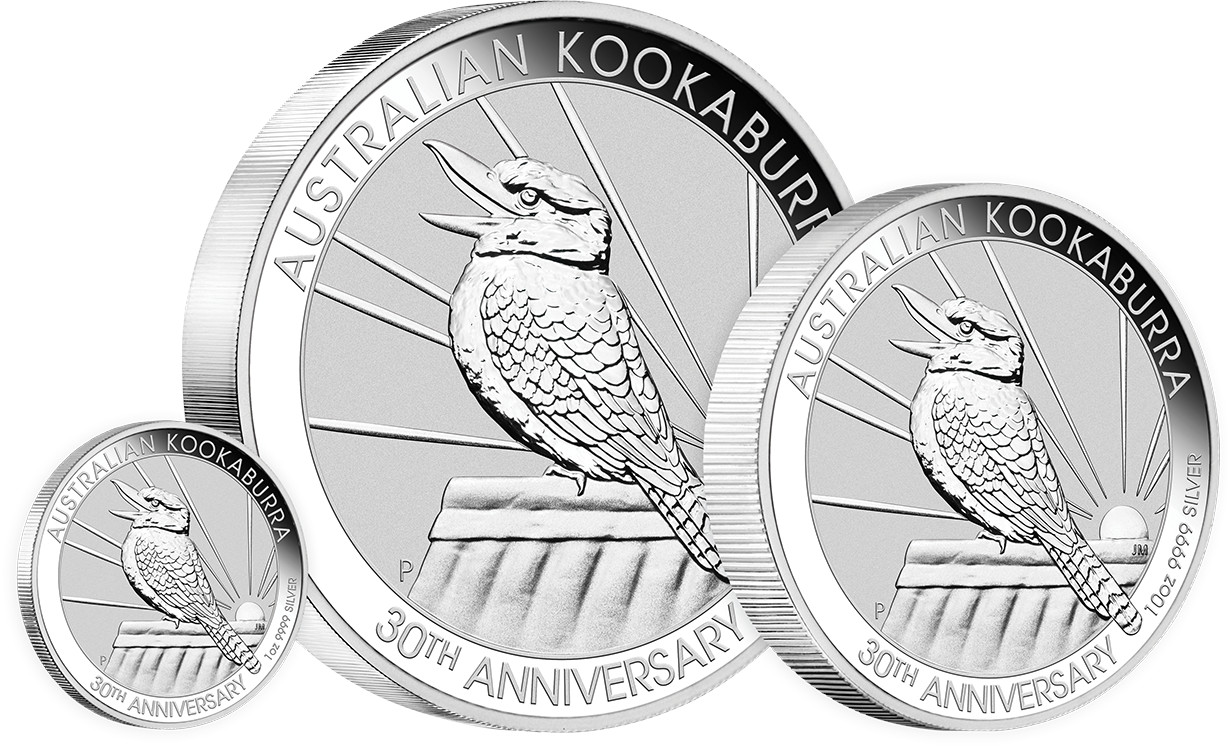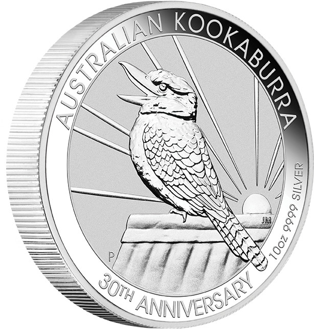 Zum 30. Geburtstag der Silbermünze Kookaburra bringt die Perth Mint eine Münze mit Jubiläumsmotiv heraus. Die Vorderseite ziert die Erstausgabe von 1990 sowie ein Miniatur-Portrait von Queen Elisabeth ll. Die Rückseite glänzt mit der Abbildung des Kookaburra. Die stark unterschiedlichen Auflagen machen diese besondere Silbermünze gleichermaßen für Anleger und Sammler