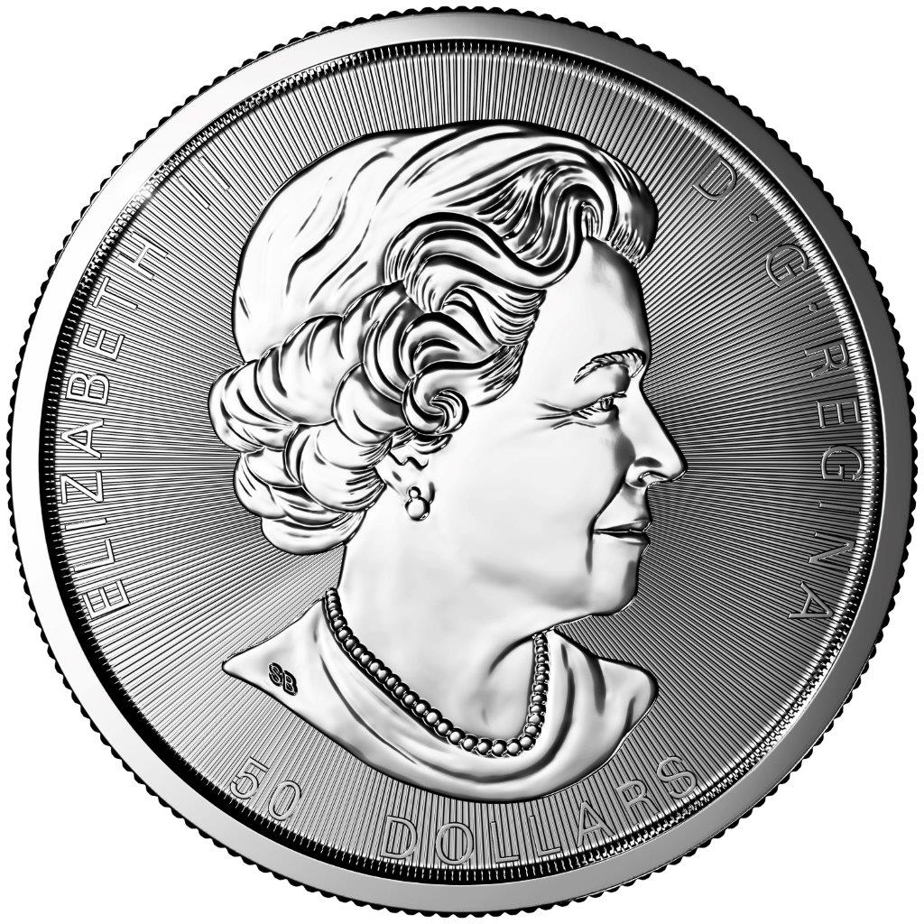 Die Royal Canadian Mint prägt seit 1979 die beliebte Maple Leaf Goldmünze. Im Jahre 1988 wurde der kanadische Silber Maple Leaf zum ersten Mal geprägt. Im März 2017 wird erstmals eine 10oz Silbermünze Maple Leaf herausgegeben. Aufgrund hervorragender Prägequalität gehören diese zu den beliebtesten und auflagenstärksten Silberanlagemünzen der Welt. Die aus dem englischen stammende Münzbezeichnung "Maple Leaf" bedeutet schlicht „Ahornblatt“. Als Bildvorlage wurde das Blattwerk des Zucker-Ahorns ausgewählt - dieses gilt als Wahrzeichen Kanadas und wird auch auf der kanadischen Flagge dargestellt. Das Ahornblatt des 10 oz Maple Leaf in Silber wurde von Celia Godkin gestaltet. Ihre Initialen befinden sich unterhalb des rechten Ahornblattes. Der Silber 10 oz Magnificent Maple unterscheidet sich vom klassischen Silber Maple Leaf, auf der Vorderseite werden zwei Blätter des Silberahornbaumes abgebildet. In der Umschrift wird das herausgebende Land „CANADA“ sowie das Ausgabejahr „2017“genannt. Im unteren Randbereich ist das Feingewicht „10 OZ“ ausgewiesen, eingerahmt von der englischen „FINE SILVER“ und der französischen „ARGENT PUR“ Bezeichnung für Feinsilber, sowie der Feinheitsangabe „9999“. Erstmals erfolgt die Ausgabe einer 10 Unzen Silbermünze mit visuellem Sicherheits-Merkmal, ein lasergraviertes Mini-Ahornblatt. Mit dieser Einzigartigkeit garantiert die Royal Canadian Mint dem Silberanleger zusätzliche Sicherheit. Das Laserzeichen ändert sich jährlich und zeigt die jeweils letzten beiden Zahlen des Prägejahres. Ein zweites Sicherheits-Merkmal sind die aufgeprägten radialen Linien. Die Wertseite der Silbermünze „Magnificent 10oz Maple Leaf 2017“ zeigt ein Portrait von Königin Elizabeth II. das von Susanna Blunt gestaltet wurde. Es stellt die Queen, die zugleich das offizielle Staatsoberhaupt Kanadas ist, mit Schulteransatz von der Seite dar. Als Schmuck trägt sie einen Ohrring und eine Perlenkette. Auf der rechten Schulter sind die Initialen von Susanna Blunt „SB“ eingeprägt. Die Royal Canadian Mint verwendet das 2003 entworfene Portrait seit dem Jahrgang 2004. Der Münzhintergrund der Wertseite ist vollständig von Radiallinien bedeckt. Im Randbereich ist unten der Nennwert „50 DOLLARS“ ausgewiesen und links die dargestellte „ELIZABETH II“ genannt. Am rechten Rand ist die Inschrift „D.G. REGINA“ für „Dei Gratia Regina“ (deutsch: „von Gottes, Gnaden, Königin“), zu lesen.