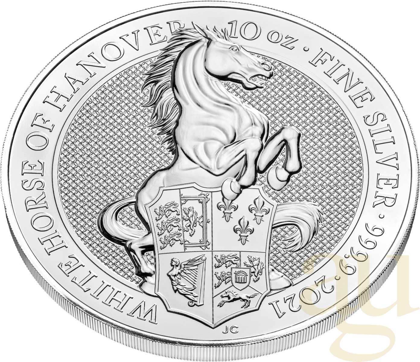 Seit dem Jahr 2016 wird die „The Queen´s Beasts“ Serie von der britischen Royal Mint ausgegeben. Die Serie beinhaltet zehn verschiedene Wappenmotive, die Rückseite wird von Königin Elizabeth ll geziert. Mit einem Nennwert von 10 Pounds gelten die Münzen als anerkanntes Zahlungsmittel in Großbritannien. Die Goldmünze White Horse of Hanover ist die neunte von zehn königlichen Münzmotiven. Die Serie symbolisiert zehn imposante Tierstatuen, welche bei der Krönung von Königin Elizabeth II. im Jahre 1953 den Eingang von Westminster Abbey zierten.