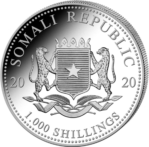 Die Münze Somalia Elefant Silber erscheint seit 2004 mit jährlich wechselnden Motiven afrikanischer Elefanten. Die Agenturausgaben wurden zunächst vom Bayerischen Hauptmünzamt und seit 2014 von Geiger Edelmetalle AG in der Schweiz unter Lizenz des Ausgabelandes Somalia geprägt. Aktuell beträgt der Nennwert der Münze 100 SOS (Somalia Shilling). Bis 2006 war diese Münze 1000 SOS wert. (Nennwert) Auf der Wertseite ist das Wappen Somalias abgebildet.