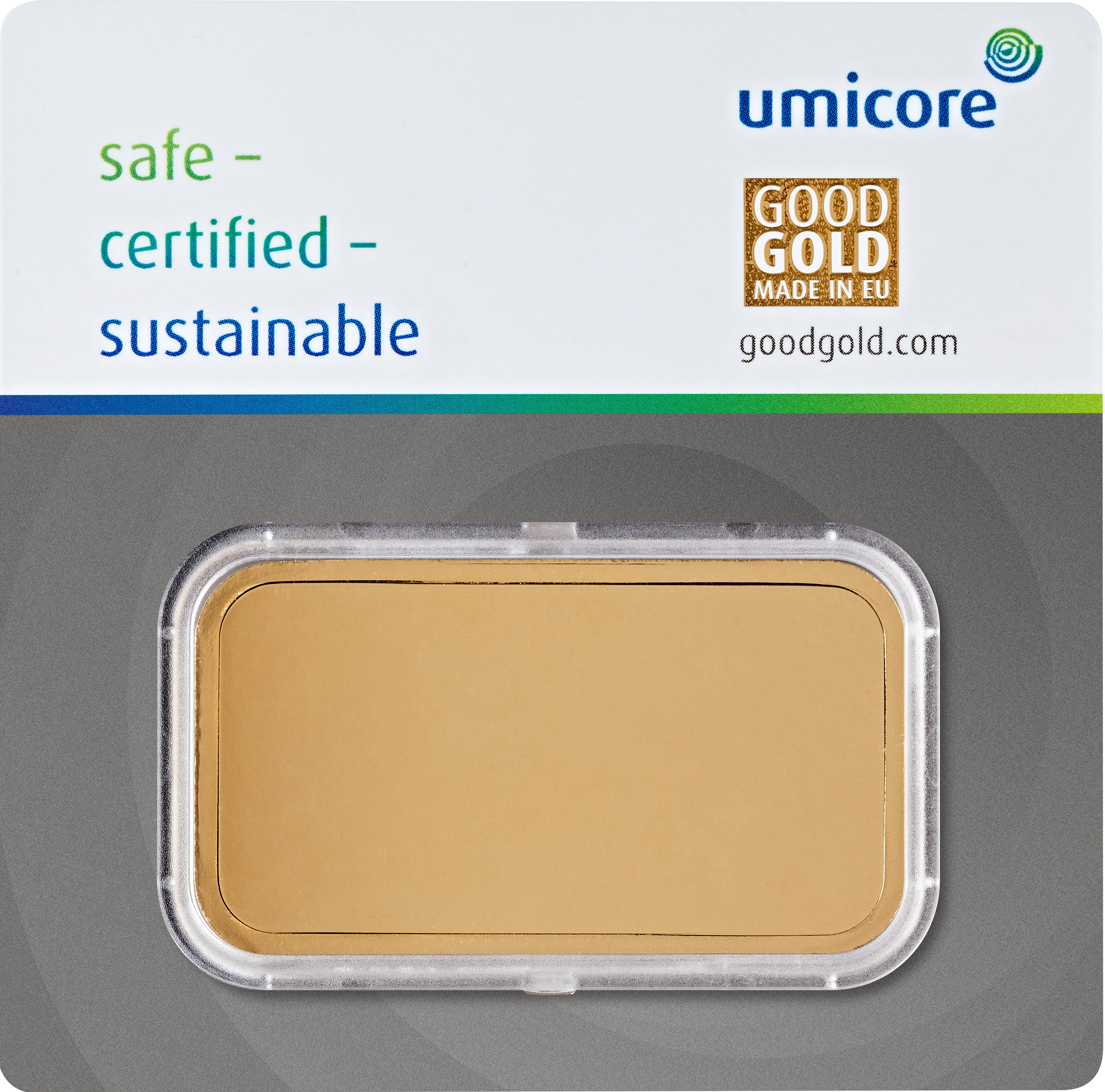 Barren mit einem Gewicht von 100g Feingold werden geprägt und meist in Folie verschweißt. Bei uns erhalten Sie 100 Gramm Goldbarren vom Hersteller Umicore in einer Blisterkarte mit Zertifikat und Seriennummer, preisgünstige Neuware. Die Verpackung sieht nicht nur ansprechend aus und ist mit zwei Schweißnähten besonders stabil, sie besteht zudem aus dem umweltfreundlichen Kunststoff PET. Das Unternehmen produziert und verkauft seit mehr als 170 Jahren neben Gold auch viele weitere wertvolle Edelmetalle. Diese werden in der konzerneigenen Recyclinganlage in Hoboken, Belgien, unter anderem aus elektronischen Abfällen gewonnen und umweltschonend in den Kreislauf zurückgeführt. Umicore-Goldbarren stehen schon immer für eine sichere Investition verbunden mit Tradition und Verantwortung für die Zukunft. Jetzt gibt es die Umicore-Goldbarren in den Größen 1g bis 100g auch in einer attraktiven Verpackung mit Echtheitszertifikat und Sicherheitsfeature. Für Käufer und Anleger lässt sich durch das Zertifikat nun noch leichter feststellen, dass es sich dabei um echtes Umicore-Gold handelt. Für zusätzliche Sicherheit sorgt nicht nur die stabile, transparente Verpackung, die den Barren vor äußeren Einflüssen schützt, sondern auch ein Hologramm als optisches Sicherheitsmerkmal, um den Schutz vor Fälschungen zu gewährleisten. Natürlich erfüllen Umicores Edelmetallbarren zudem höchste Qualitäts- und Nachhaltigkeitsstandards und sind deshalb mit den wichtigsten branchenspezifischen Zertifizierungen wie dem "LBMA Good Delivery-Status" sowie dem Zertifikat des "Responsible Jewellery Council" ausgezeichnet. Weiterführende Informationen zu den neuen Umicore-Goldbarren und zur Edelmetallgewinnung bei Umicore finden Sie unter www.gutesgold.de.