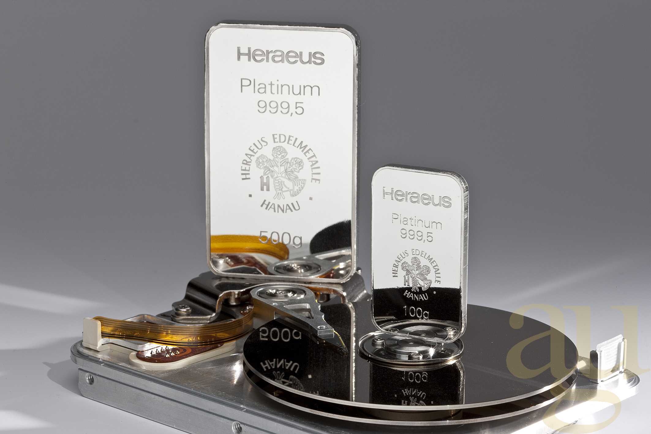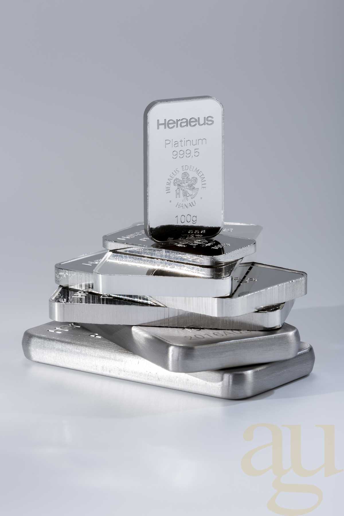 Mit Platin fing alles mit dem heutigen Technologiekonzern Heraeus an. Der Heraeus-Konzern mit Sitz in Hanau bei Frankfurt am Main ist weltweit tätig und befindet sich seit mehr als 160 Jahren in Familienbesitz. Die elf Geschäftsfelder erstrecken sich über die Bereiche Edelmetalle, Sensoren, Biomaterialien und Medizintechnik sowie Quarzglas und Speziallichtquellen. Die Tochtergesellschaft Heraeus Metals Germany GmbH & Co. KG ist im Konzern verantwortlich für die Herstellung von Gold- und Silberbarren.  Heraeus verdankt seine Erfolgsgeschichte dem Edelmetall und dem Unternehmensgründer Wilhelm Carl Heraeus, einem Apotheker und Chemiker aus Hanau. Er war der Erste, dem es gelang Platin zu schmelzen, das war im Jahr 1851. Damit konnte Platin nun in Schmuckfabriken, Zahnlabors und in der Industrie leicht eingesetzt werden. Mit der Zeit fanden sich immer weitere Verwendungsmöglichkeiten für das Edelmetall. Die Platinbarren aus dem Hause Heraeus werden ausschließlich im Prägeverfahren hergestellt und sind in Größen zu einer Unze, 100 Gramm, 500 Gramm und einem Kilogramm erhältlich. Das spezifische Gewicht ähnelt dem von Gold, das Aussehen dem von Silber. Erst im 18. Jahrhundert wurde Platin chemisch genauer untersucht. Mit der Entdeckung einer größeren Lagerstätte in Südafrika ("Merensky Reefs", 1924) konnte das Edelmetall erstmalig wirtschaftlich abgebaut werden. Heute spielt Platin nicht nur eine bedeutende Rolle in der Automobilindustrie, vor allem bei der Herstellung von Katalysatoren, sondern kommt auch in anderen industriellen Prozessen zum Einsatz. Unter dem Namen des Barrenherstellers  finden sich auf der Vorderseite aller Barren die Angaben "Platinum" und "999,5", die die Metallart und dessen Feinheit aufweist. Die Barren sind mit dem charakteristischen Heraeus Wappen, welches als Motiv eine Hand voller Rosen trägt und umgeben von der Rundschrift "Heraeus Edelmetalle Hanau" darstellt. Die Angaben zum Feingewicht der Barren ergänzen die Informationen. Eine Ausnahme bildet der 1kg Barren (Produktion ab 2013). Seine Seriennummer setzt sich aus Produktionsjahr, einem Buchstaben sowie Zahlen zusammen.