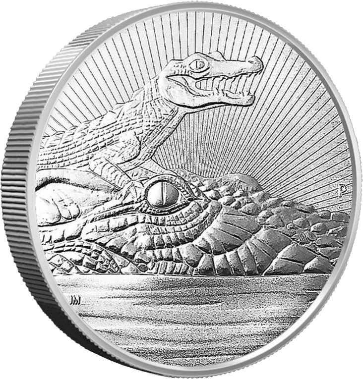 Mit der 10 Unzen Silber Krokodil 2019 erhalten Sie die zweite Ausgabe der Münzserie „Next Generation", welche seit 2018 als Auftragsarbeit von der australischen Perth Mint geprägt wird. Die Münze widmet sich dem Salzwasserkrokodil (auch Leistenkrokodil oder „Saltie" genannt), der größten heutzutage lebenden Krokodilart. In Australien findt man sie größtenteils an der Nordküste und der nördlichen Ostküste. In Brackwasserzonen wie Küstengewässern, Mangrovensümpfen oder Flussmündungen fühlen sich die Reptilien am wohlsten. Die Silbermünze wird in einer limitierten Auflage von maximal 2.500 Stücken als Piedfort (mit doppelter Dicke) geprägt. Charakteristisch für die Münze ist, dass auf der Vorderseite kein Schriftzug, sondern nur das entsprechende Motiv abgebildet ist.