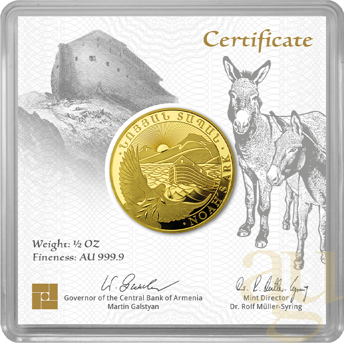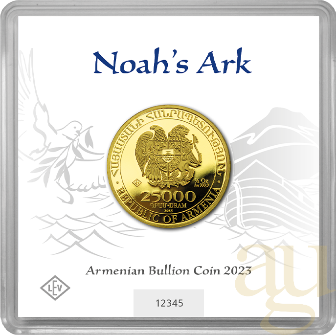 Im September 2020 erschien die Goldmünze Arche Noah aus Armenien erstmals als Anlagemünze in Stempelglanz. Die Geiger Edelmetalle AG besitzt das Prägerecht und produziert die Münze in Deutschland. Auf der Vorderseite ist das aus der Bibel bekannte Schiff in aufgewühlter See vor im Hintergrund verlaufenden Sonnenstrahlen über dem armenischen Gebirge Ararat zu sehen.