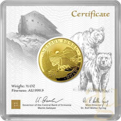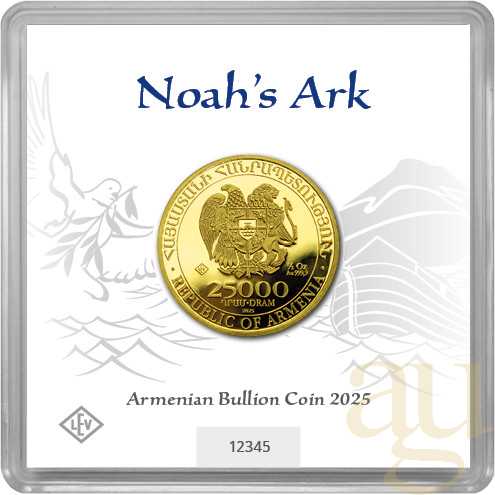 Im September 2020 erschien die Goldmünze Arche Noah aus Armenien erstmals als Anlagemünze in Stempelglanz. Die Geiger Edelmetalle AG besitzt das Prägerecht und produziert die Münze in Deutschland. Auf der Vorderseite ist das aus der Bibel bekannte Schiff in aufgewühlter See vor im Hintergrund verlaufenden Sonnenstrahlen über dem armenischen Gebirge Ararat zu sehen.