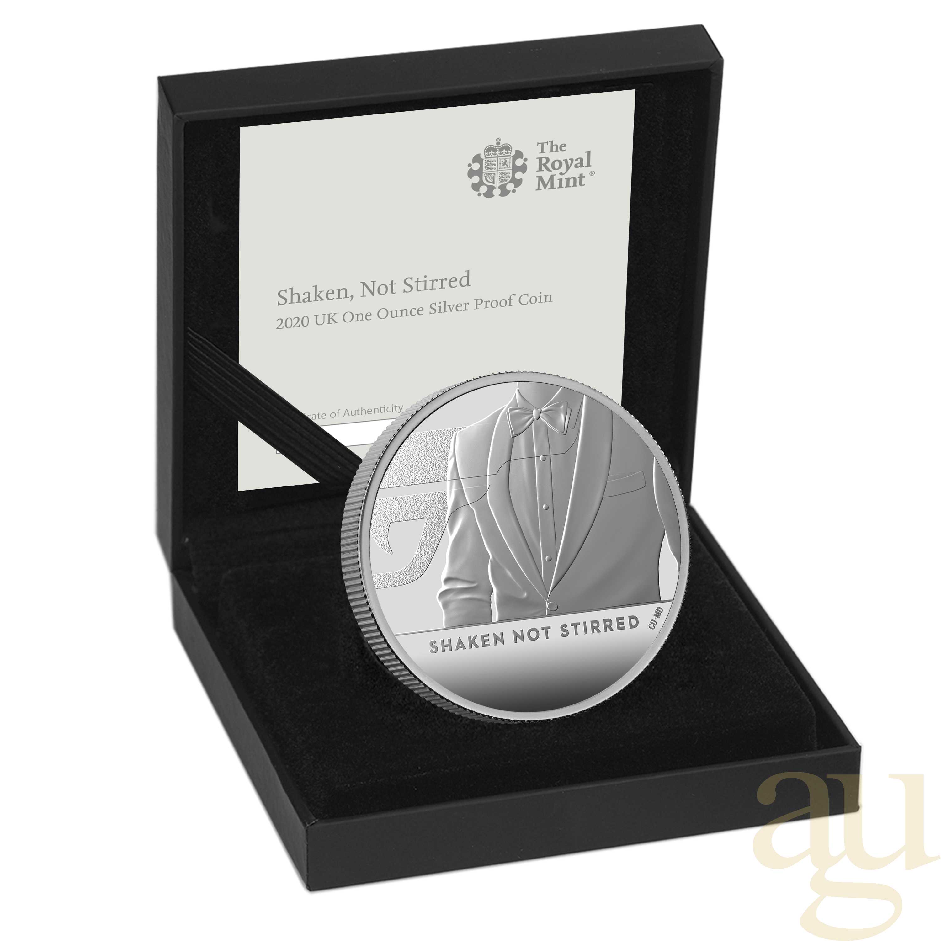 1 Unze Silbermünze Großbritannien James Bond 007 Shaken Not Stirred - 2020 polierte Platte