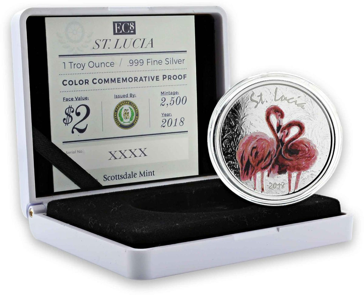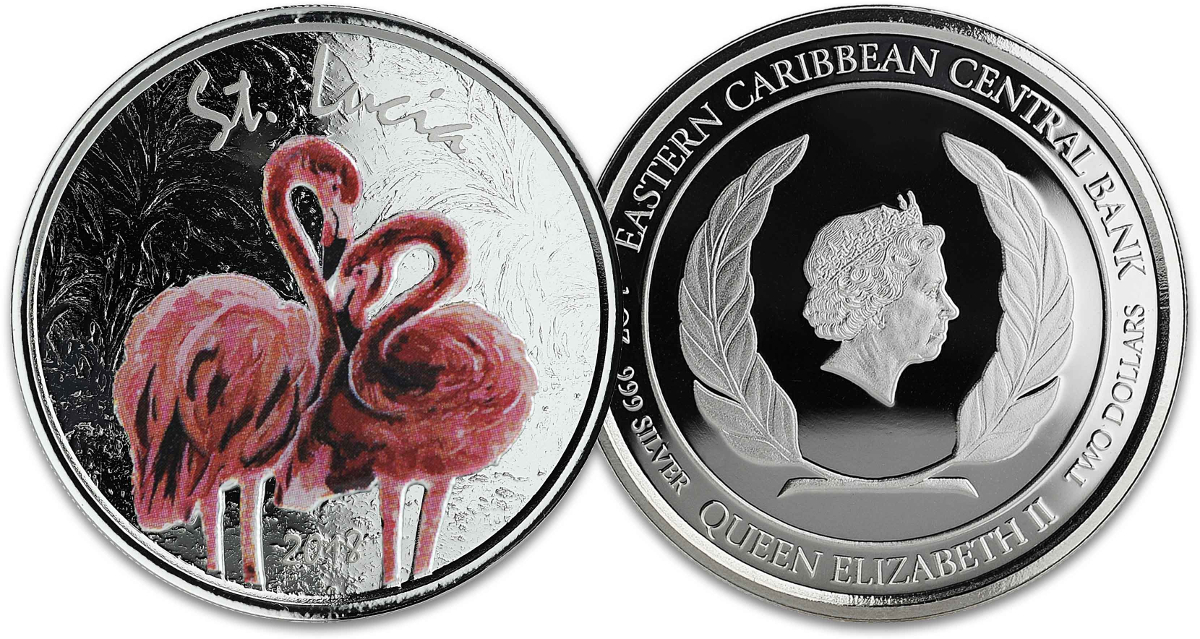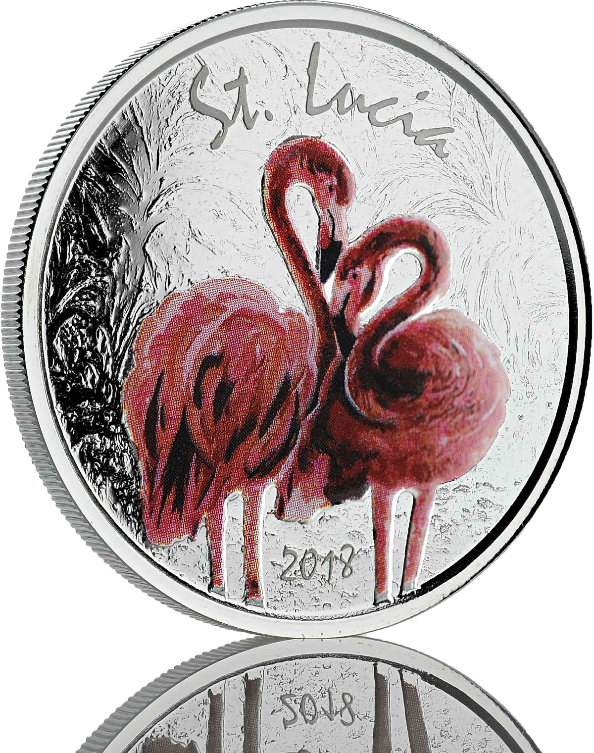 Produktinformationen "1 Unze Silbermünze EC8 St.Lucia - Flamingo 2018 coloriert"