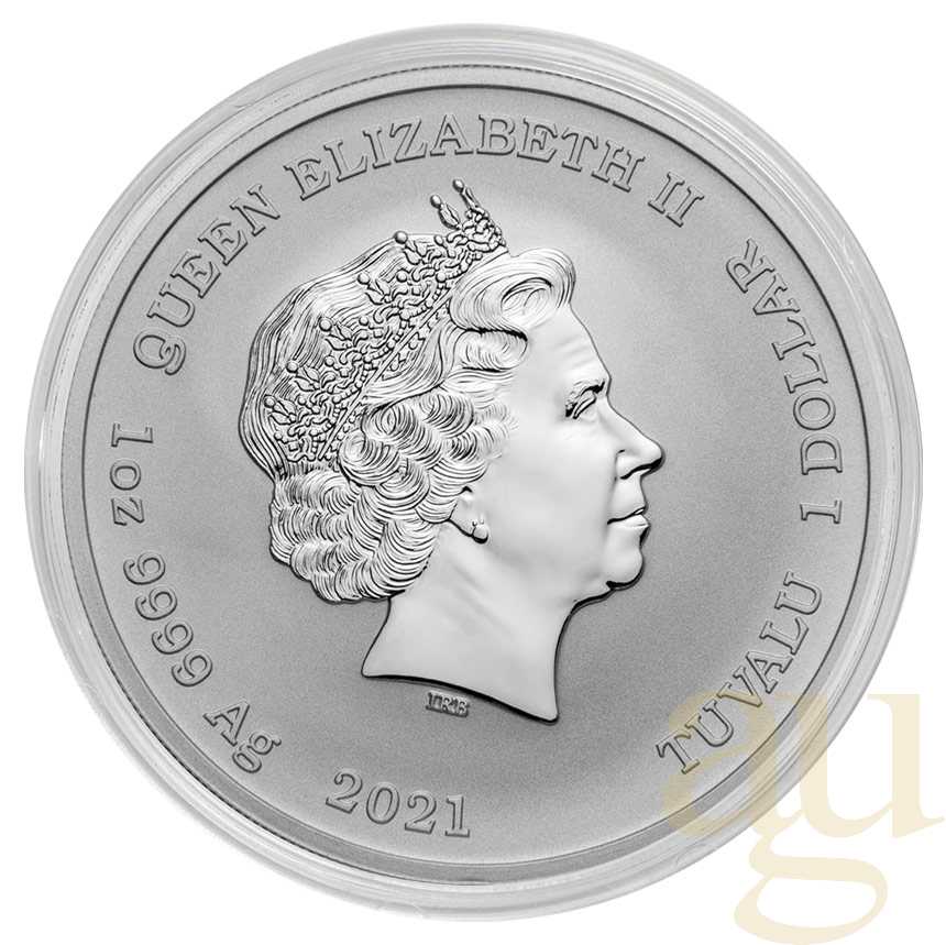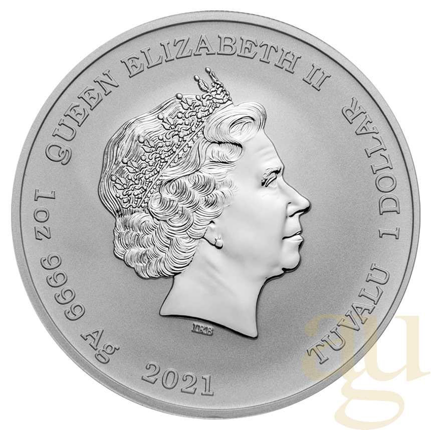 Die Vorderseite zeigt das Konterfei Ihrer Majestät Königin Elisabeth II. von Ian Rank-Broadley, den Nennwert, das Gewicht und den Feingehalt der Münze sowie die Jahreszahl 2021.