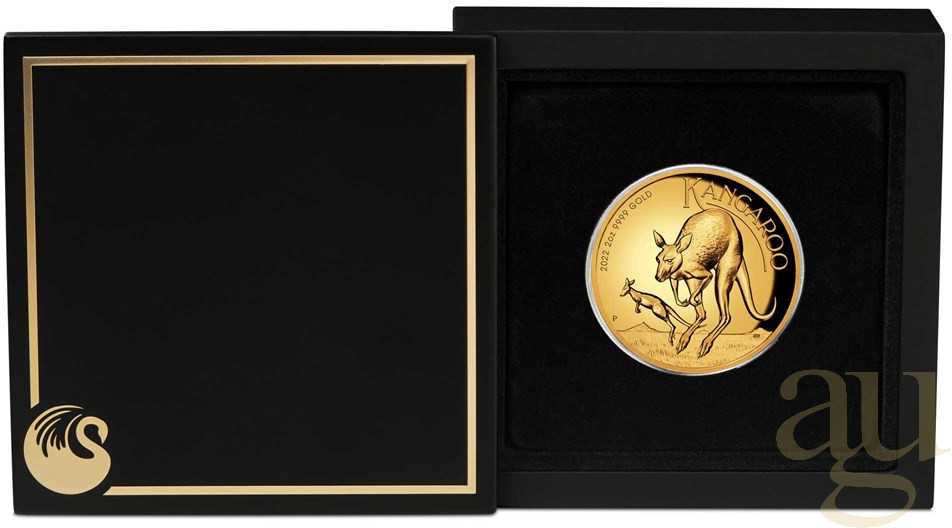 2 Unzen Goldmünze Australien Känguru 2022 - High Relief - polierte Platte