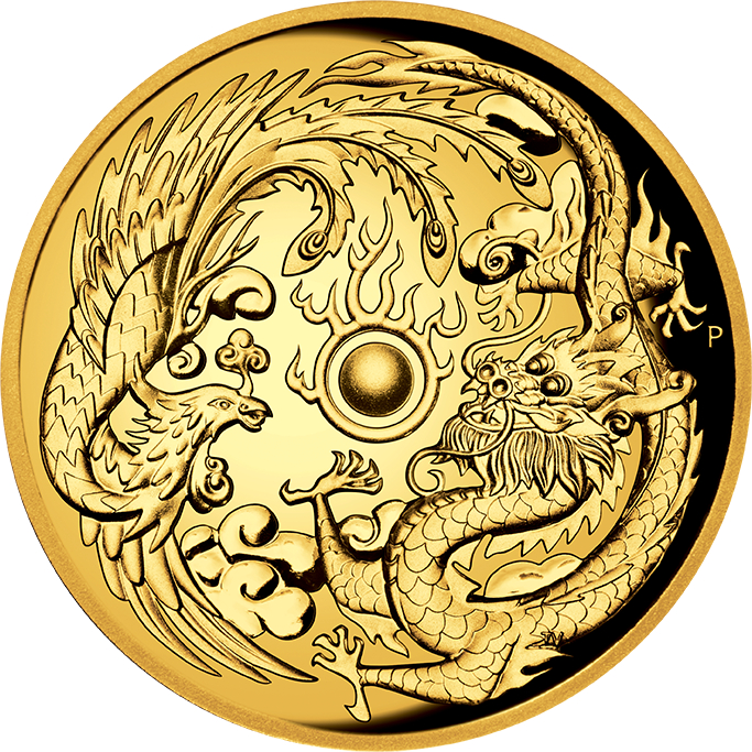 Die Perth Mint veröffentlichte 2018 die 2 Unzen Goldmünze Dragon & Phoenix, im Deutschen Drache & Phönix. In der chinesischen Kultur wird der Drache als göttliches Fabelwesen verehrt. Man sagt ihm nach, dass er ein Symbol für Macht, Stärke, Reichtum und Glück ist. Oft sehen wir ihn bildlich dargestellt in Verfolgung einer leuchtenden oder flammenden Kugel. Die flammende Kugel steht wiederum für Weisheit, Erleuchtung und spirituelle Energie. Einer Sage nach befreit sie eine Person von seinen Problemen und bringt diesen beruflichen Erfolg sowie Glück und Gesundheit. Drachen werden häufig auf der Jagd nach der flammenden Kugel dargestellt. Dies wird oft durch das Wirbeln von Nebel, Rauch und Schatten veranschaulicht.