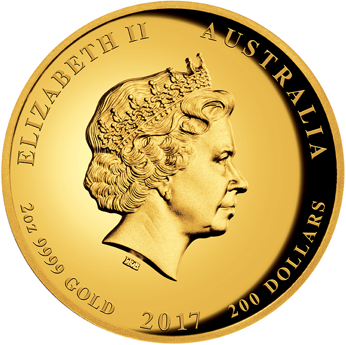 Die Rückseite der Münze zeigt detaillierte Darstellungen eines Drachen und eines Phönix mittig einer flammenden Kugel, mit einer stilisierten Darstellung von Wolken im Hintergrund. Das Design beinhaltet das Münzzeichen "P" der Perth Mint. Das Hochrelief der Münze und die Vorderseite sind auf konkaven Flächen geprägt, um zu gewährleisten, dass durch das Anschlagen der Matrize ein optimaler Metallfluss erzielt wird. Die Goldmünze besitzt eine Feinheit von 999,9/1000. Auf der Vorderseite ist das Portrait von Elisabeth II., designt von Ian Rank-Broadley, zu sehen sowie die Umschrift „ELIZABETH II", „AUSTRALIA", „2 oz 9999 GOLD", der Jahrgang „2017“ und der Nennwert von „200 DOLLARS". Münzen in der höchsten Prägequalität "Polierte Platte" (PP), auch oft als Spiegelglanz bezeichnet, sind in der Regel teurer als Münzen in Normalprägung. Sie erfahren aber wegen des aufwändigen Prägeverfahrens und der zumeist deutlich geringeren Auflage auch die größeren Wertsteigerungen. Die 2 Unzen Goldmünze Dragon & Phoenix hat eine Auflage von nur 500 Stück.