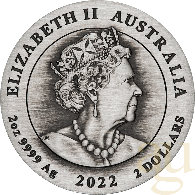 Produktinformationen "2 Unzen Silbermünze Australien Drache 2022 - Antik Finish"