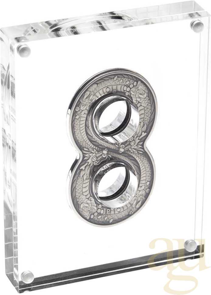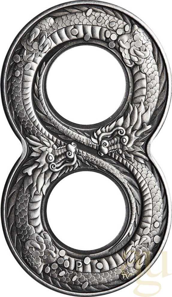 Produktinformationen "2 Unzen Silbermünze Australien Figure 8 Drache 2018 Antik Finish"
