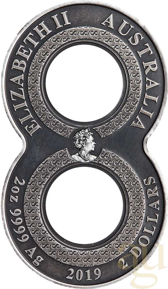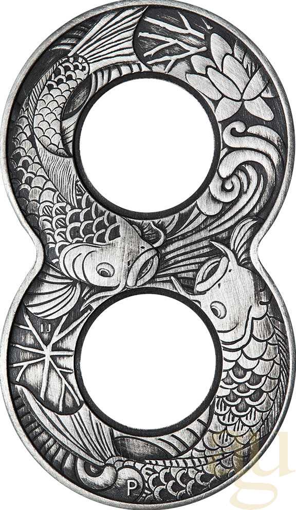 Produktinformationen "2 Unzen Silbermünze Australien Figure 8 Koi Fish 2019 Antik Finish"
