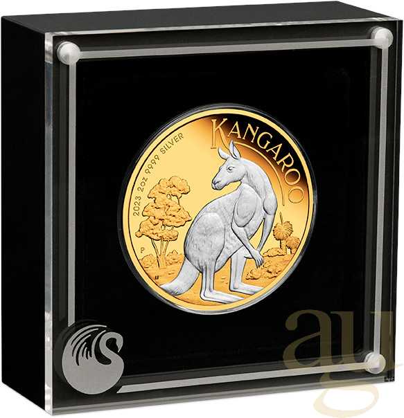 2 Unzen Silbermünze Australien Känguru 2023 teilvergoldet